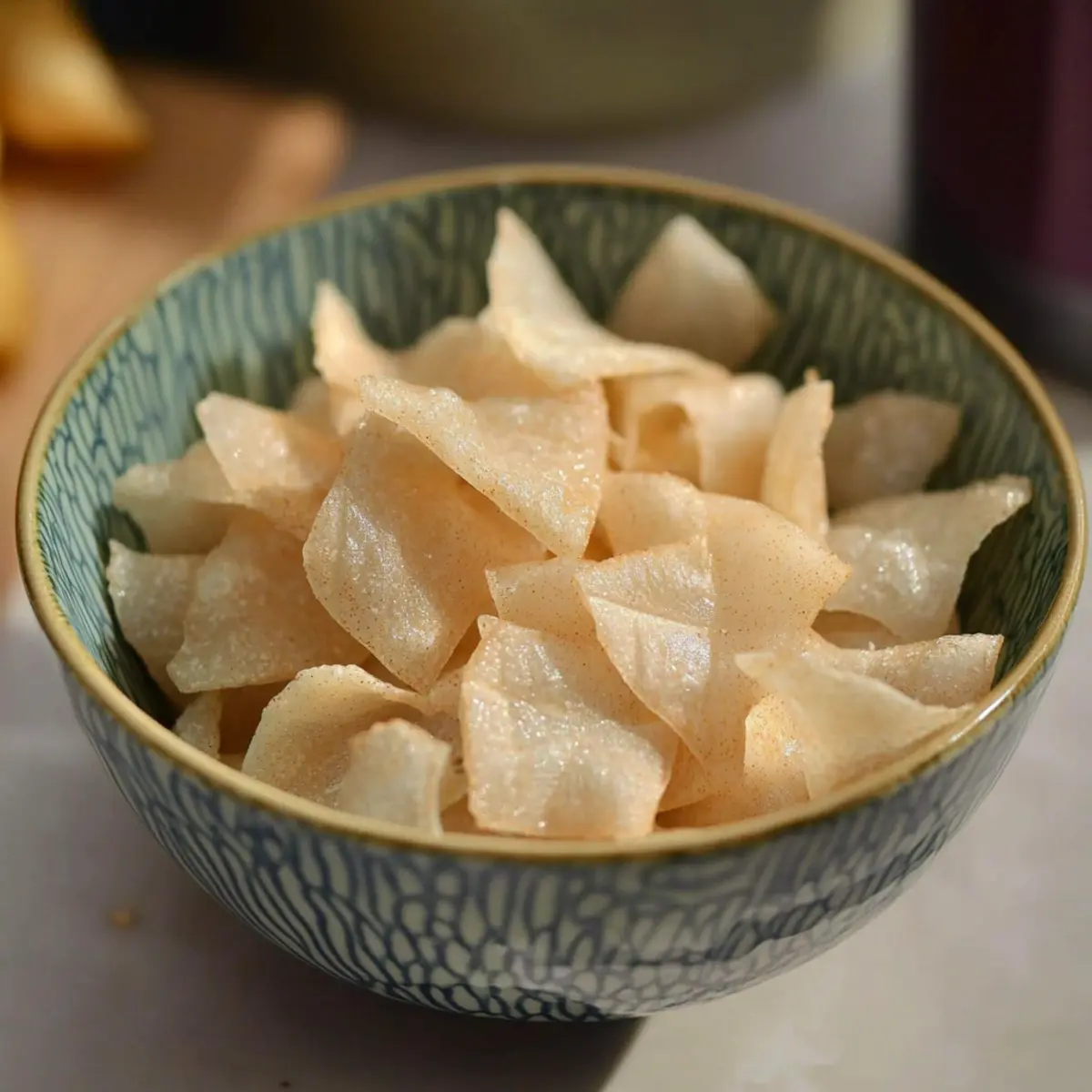 Hydration Balance: Ensure rice paper is hydrated just enough; overly soggy sheets will result in chewy chips rather than the desired crispiness.