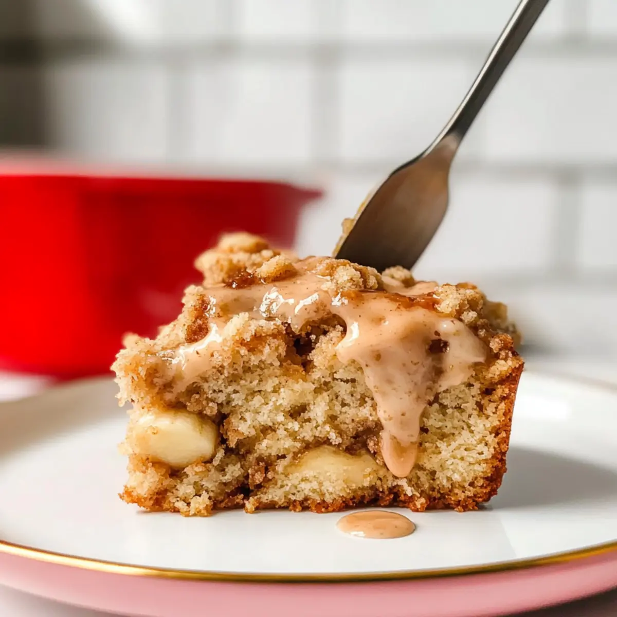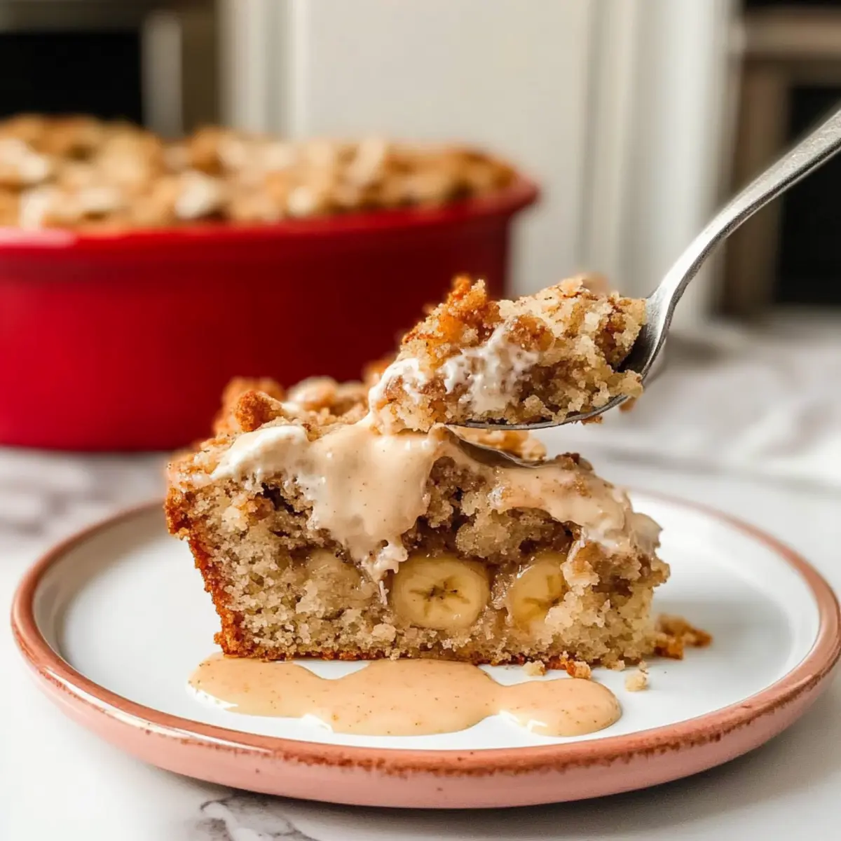 Once the cake has cooled, gently drizzle the cream cheese mixture over the top. This final touch adds a creamy, sweet contrast that complements the crumbled topping beautifully. Slice, serve, and watch as everyone enjoys a sweet piece of your Banana Crumb Cake!