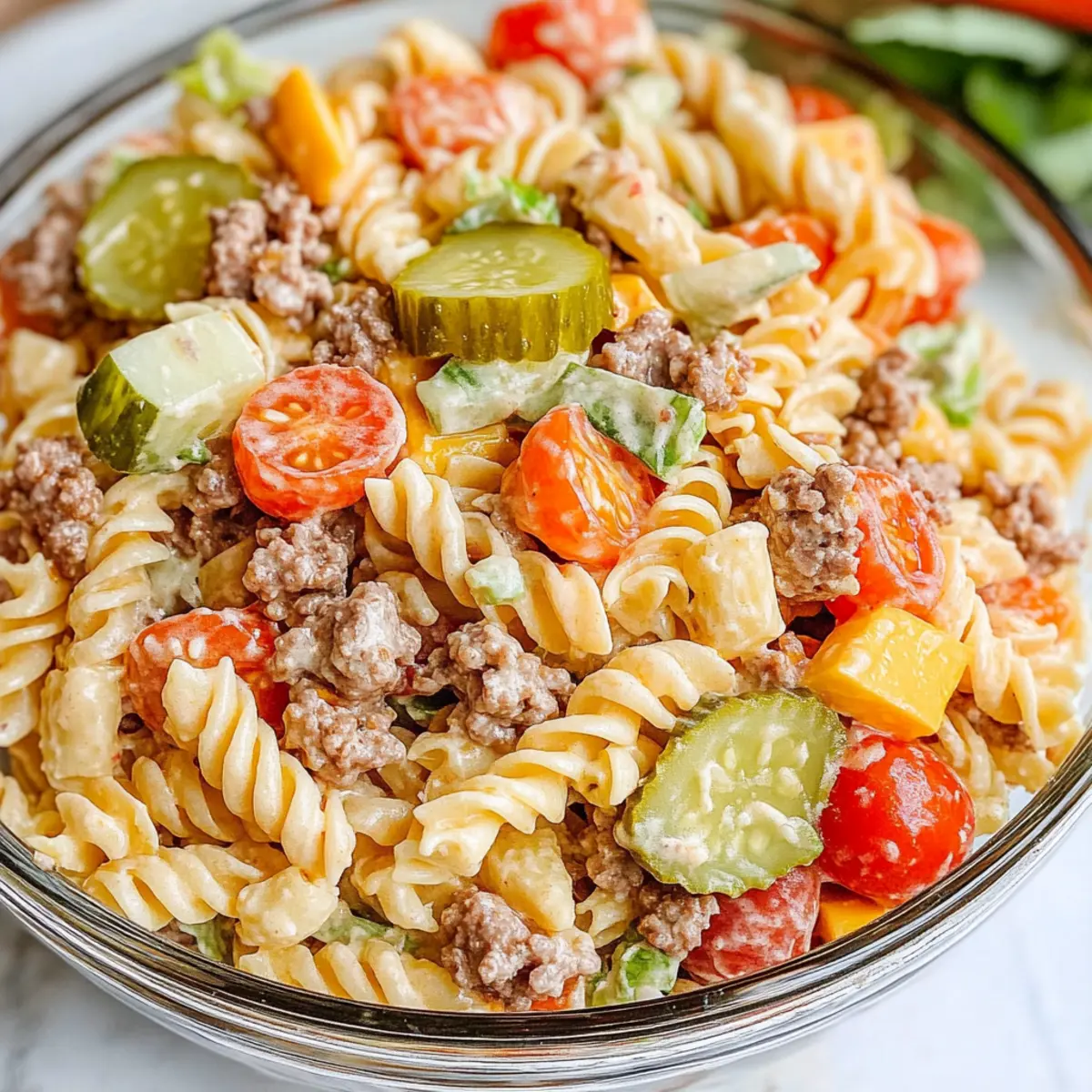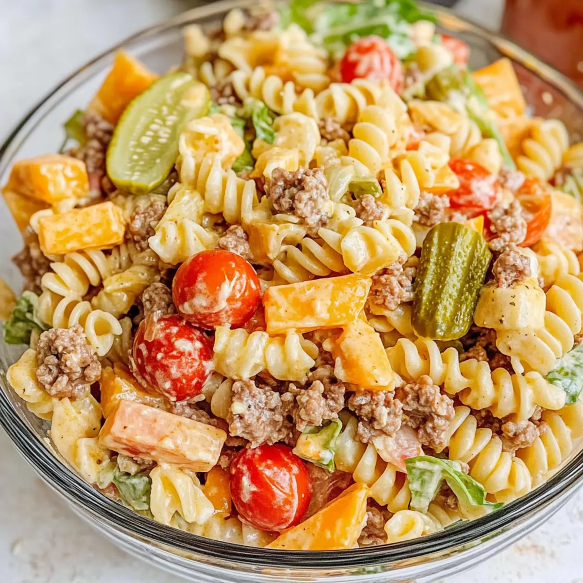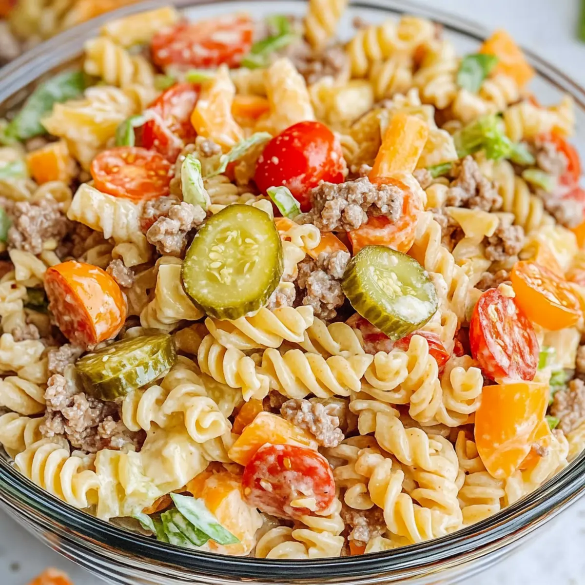 Use High-Quality Ingredients: For the most flavorful Big Mac Pasta Salad, choose quality ground beef and fresh produce for that satisfying, home-cooked taste!