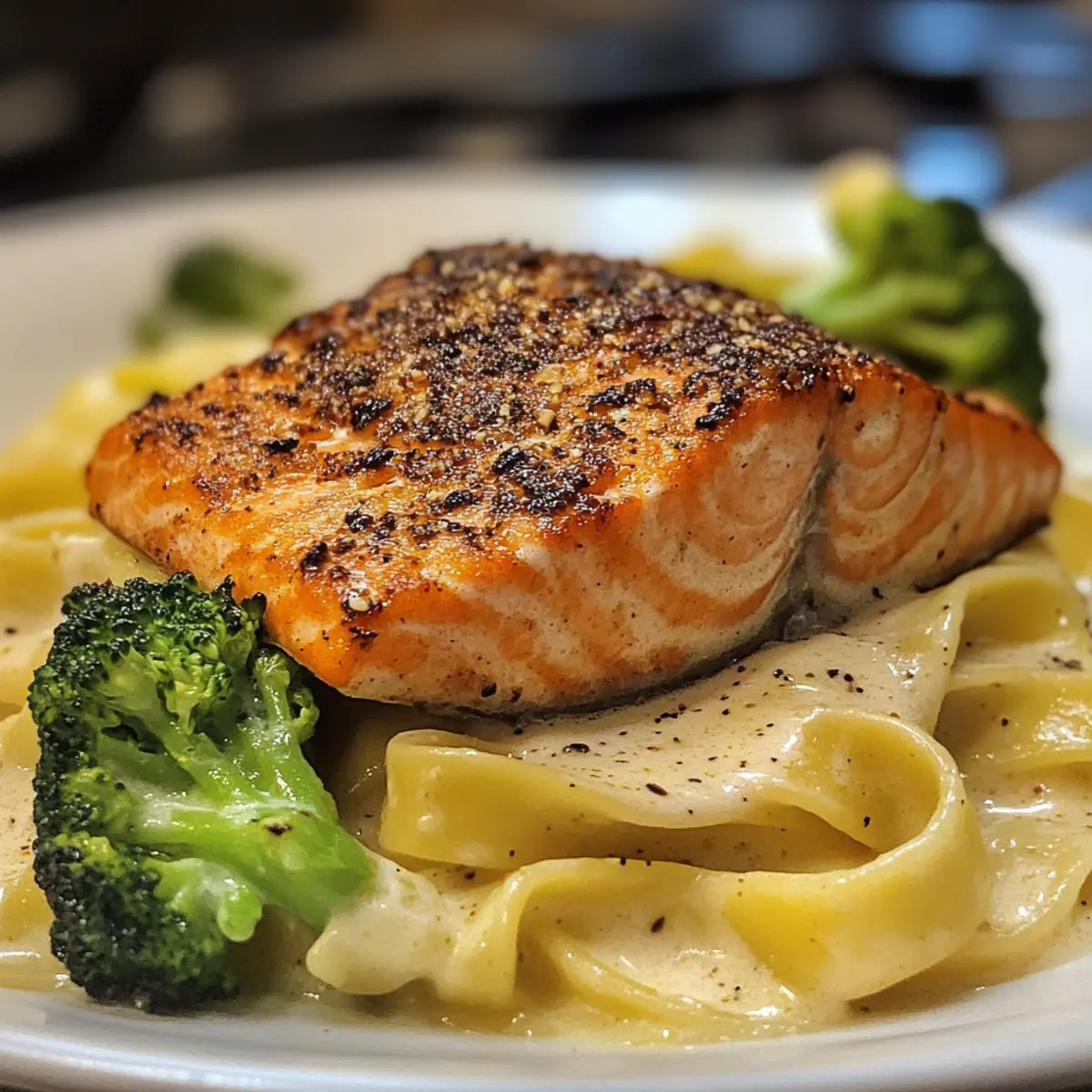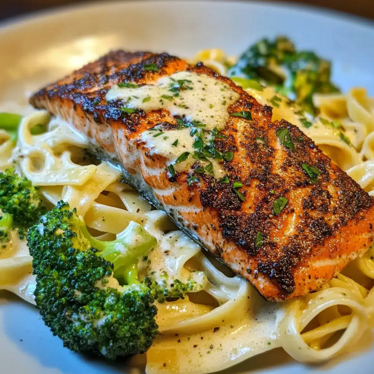 Delicious Blackened Salmon and Broccoli Alfredo in Minutes