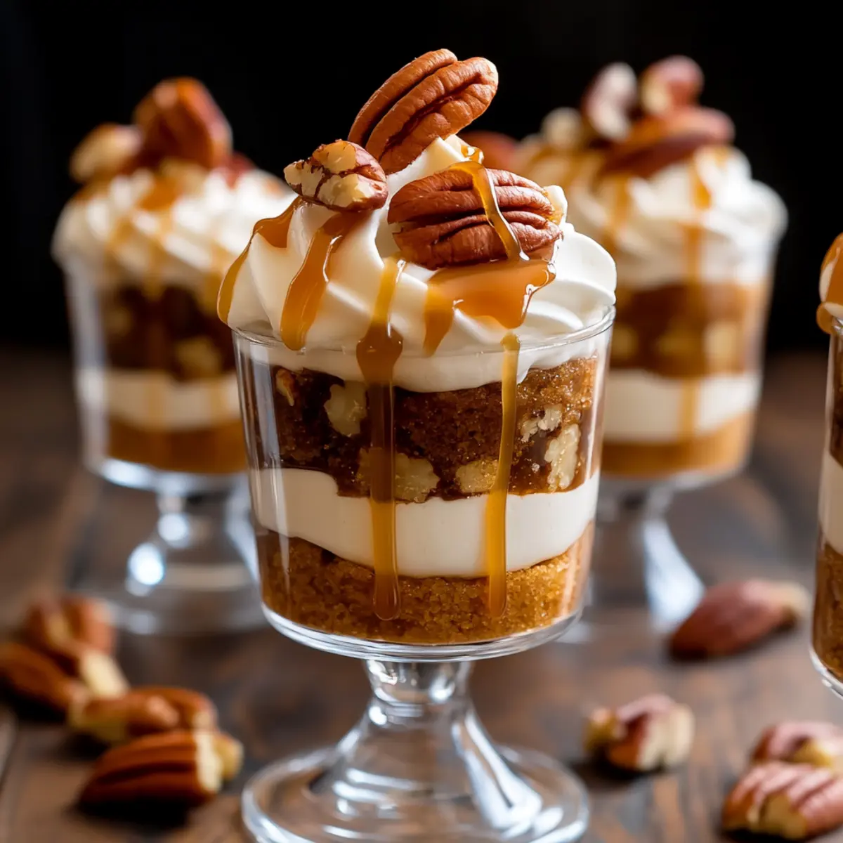 Creamy, Dreamy Layers: Each bite of these Mini Caramel Pecan Pumpkin Cheesecake Trifles is a heavenly mix of creamy cheesecake and moist pumpkin cake, making them a perfect indulgence for fall.
