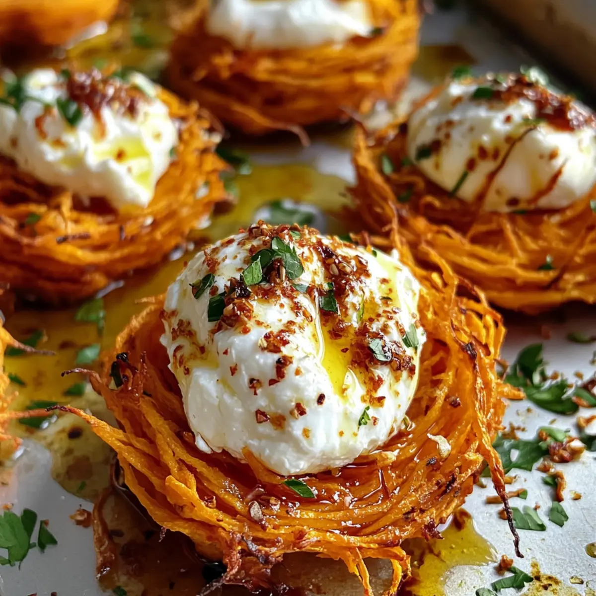 Crispy Sweet Potato Nests with Burrata and Chili Honey Bliss