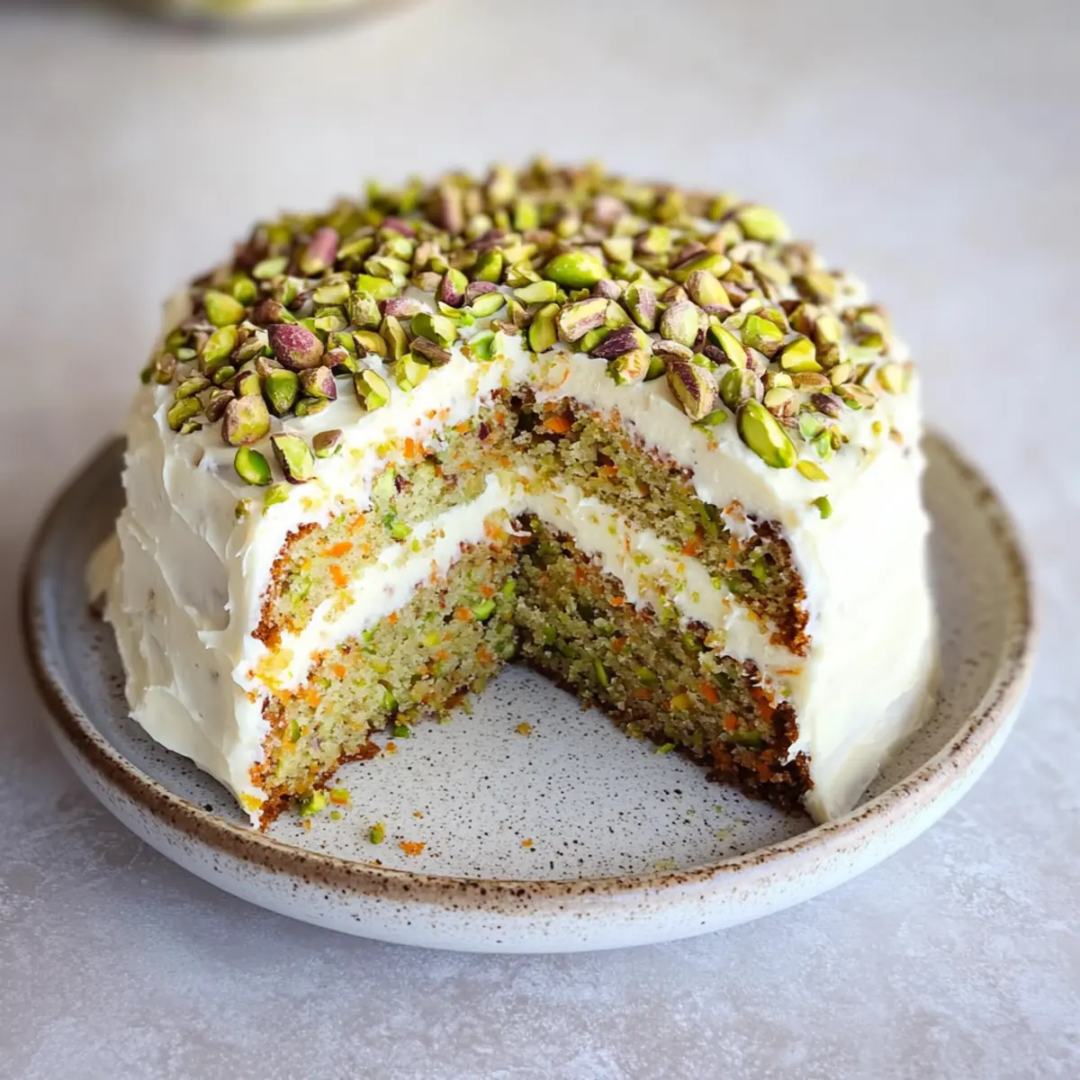 Delight in Vegan Carrot Pistachio Cake with Cream Cheese Frosting