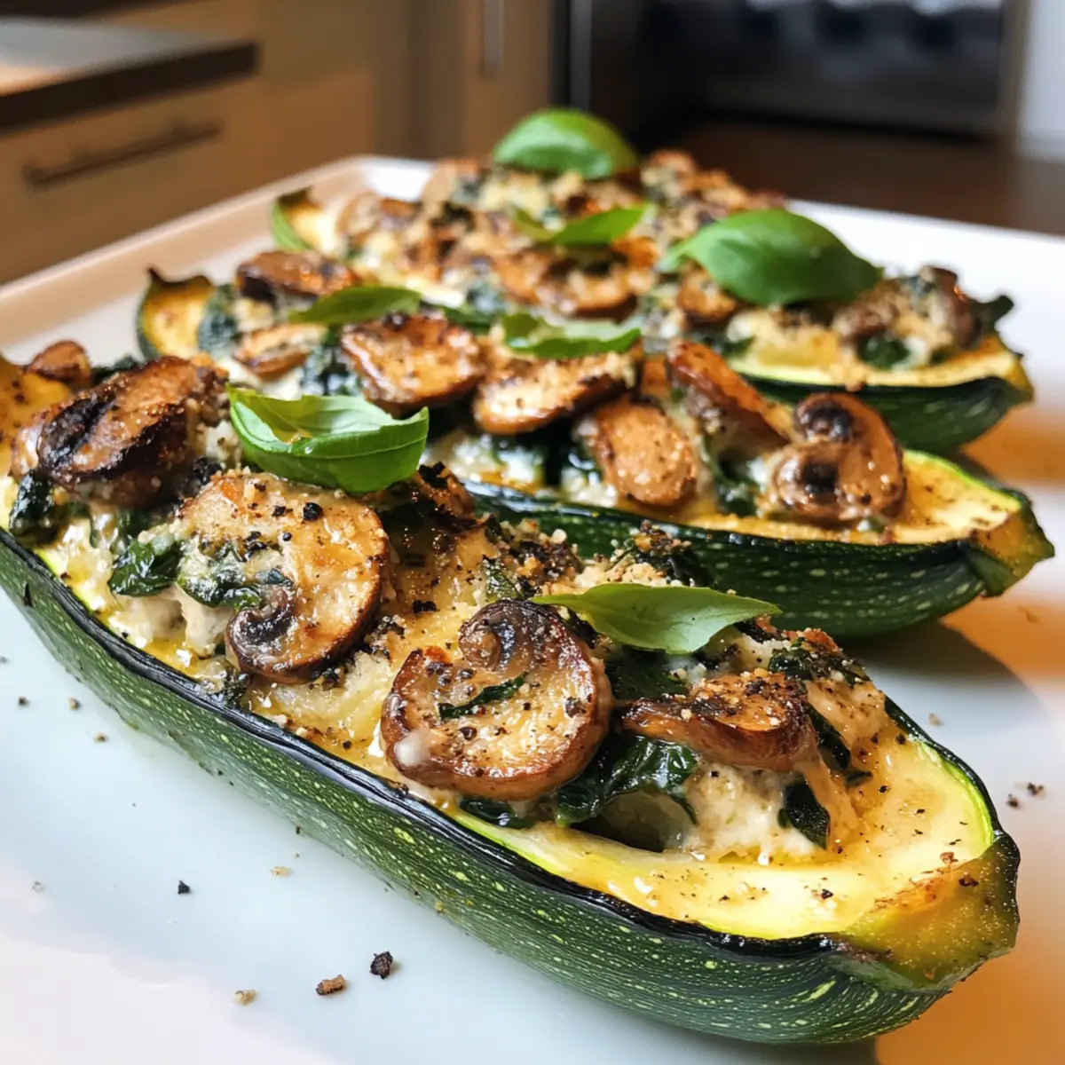 Delicious Spinach, Mushroom, and Ricotta Stuffed Zucchini Boats