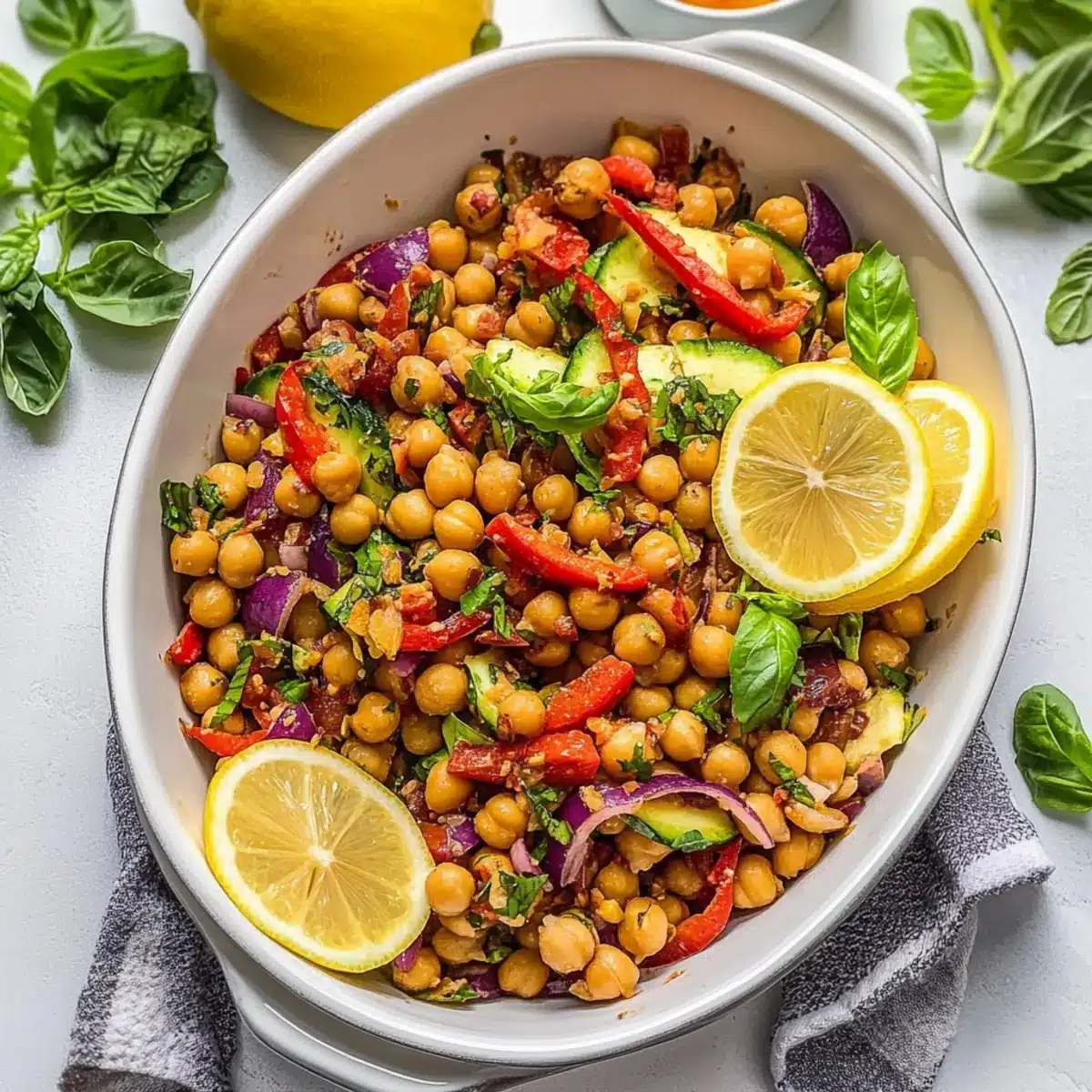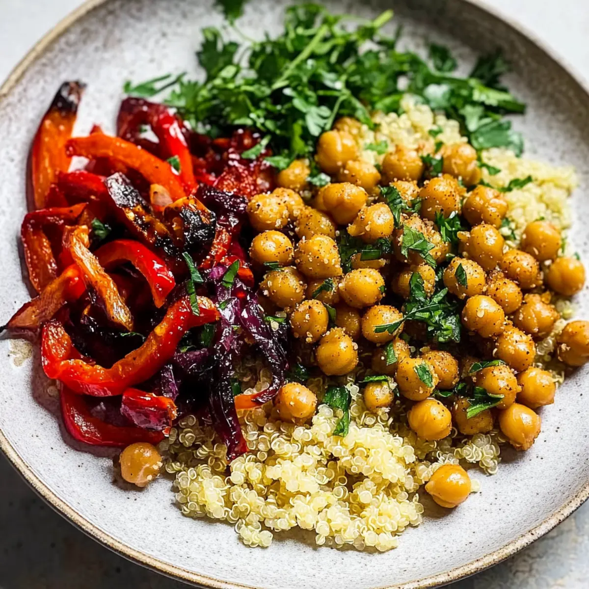 Roasted Red Pepper Salad with Crispy Chickpeas for Cozy Days