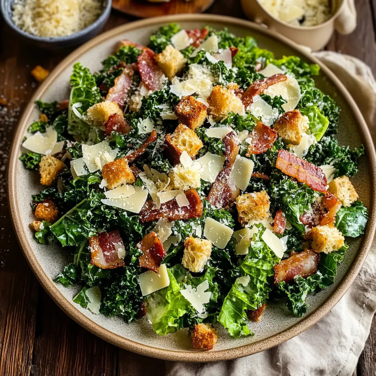 Roasted Garlic & Kale Caesar Salad with Crispy Bacon Delight