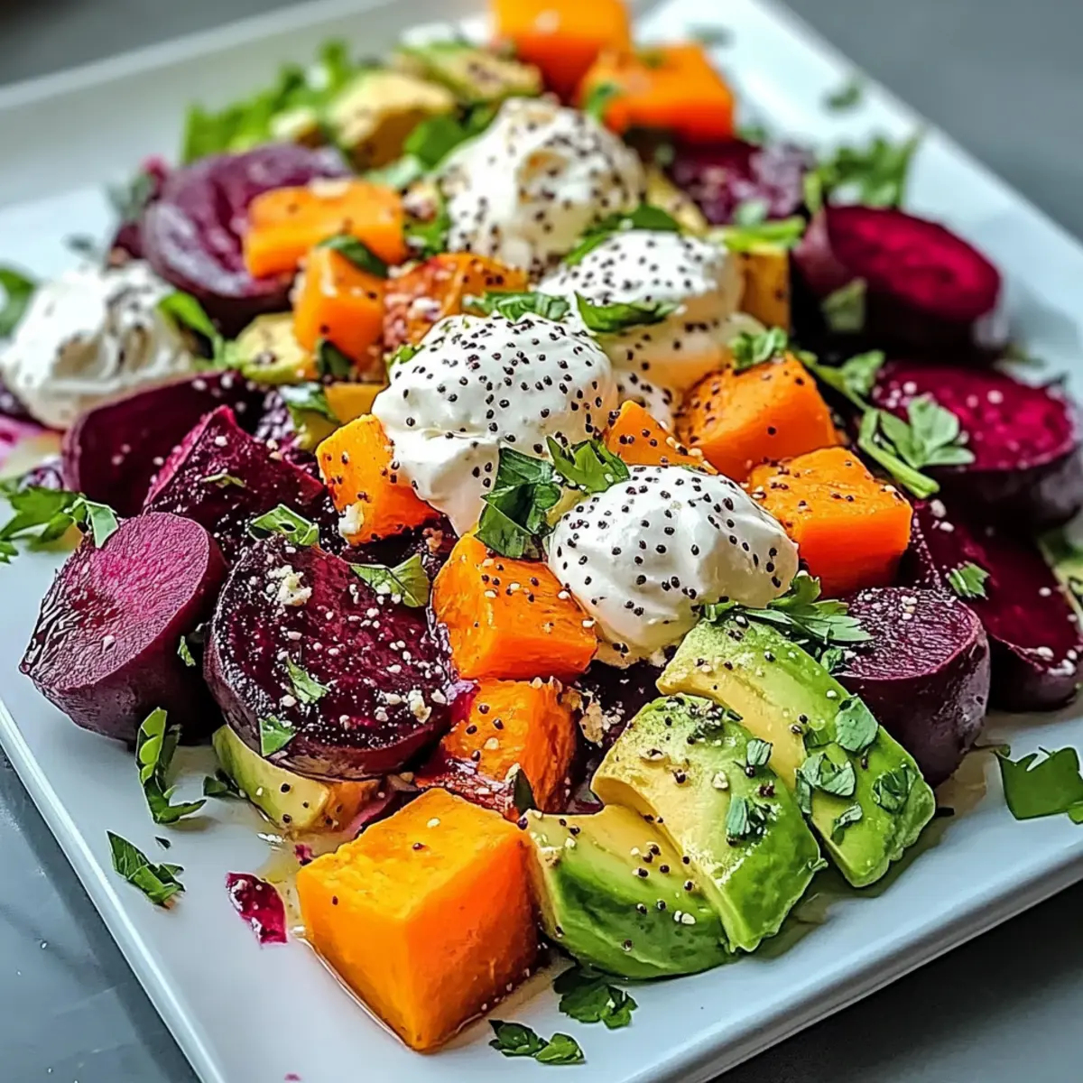 Vibrant Roasted Beet, Sweet Potato & Avocado Salad Delight