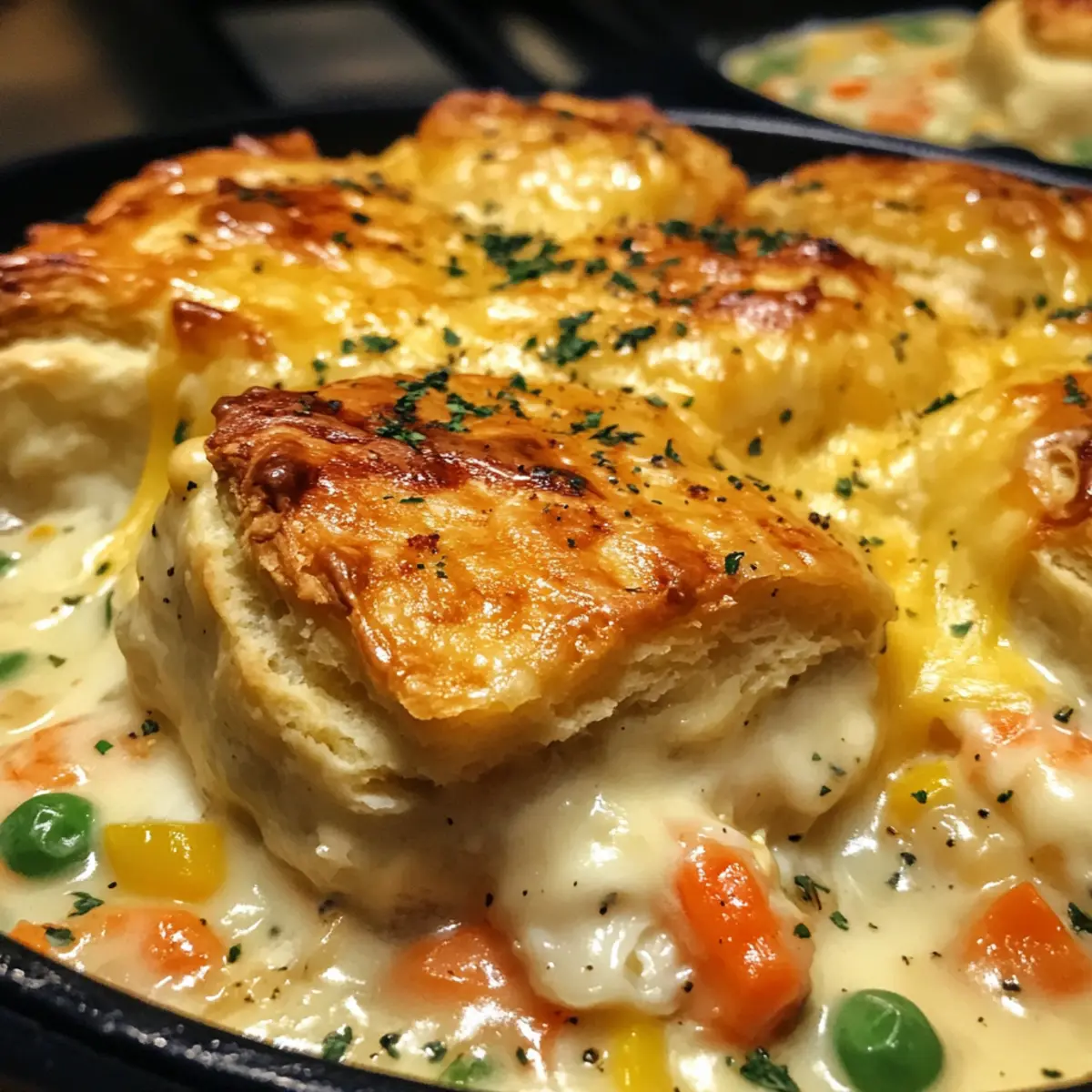 These Cheddar Bay Biscuit Seafood Pot Pies are perfect for busy weeknights! You can prepare the creamy seafood filling up to 24 hours in advance and store it in an airtight container in the refrigerator. Just make sure to let it cool completely before sealing to maintain its freshness. When you’re ready to enjoy, simply reheat the filling on the stovetop while preparing the biscuit topping as directed. Assembling and baking will take just 14-16 minutes, ensuring you still have that golden, cheesy crust that’s just as delicious as if made fresh. This prep-ahead strategy not only saves time but allows the flavors to meld beautifully, making for an even tastier pot pie!