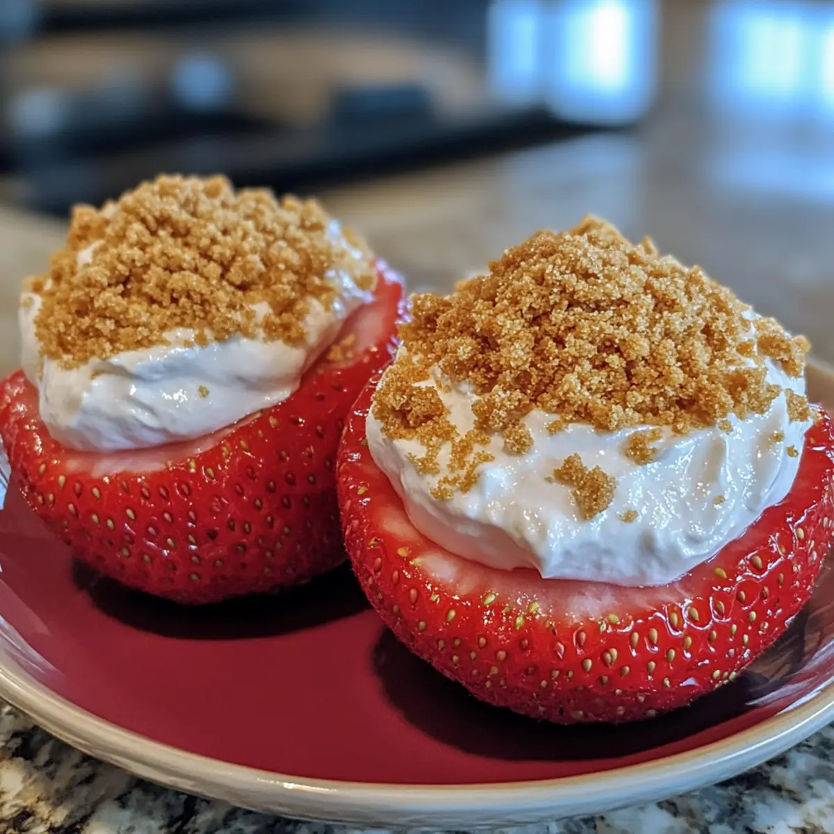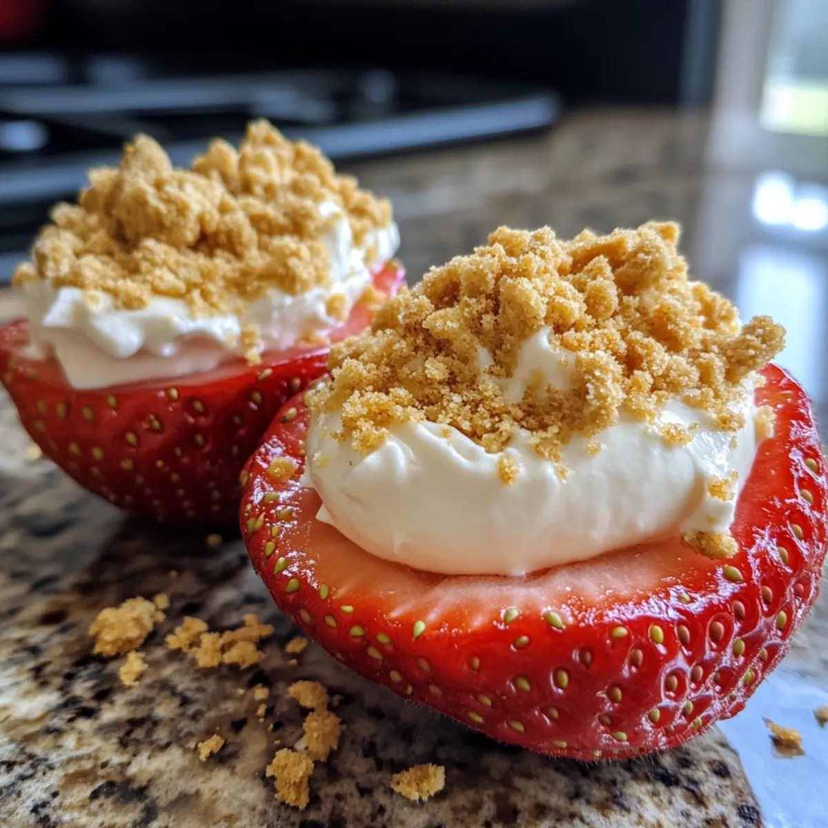- Sprinkle graham cracker crumbs over the top of each filled strawberry.