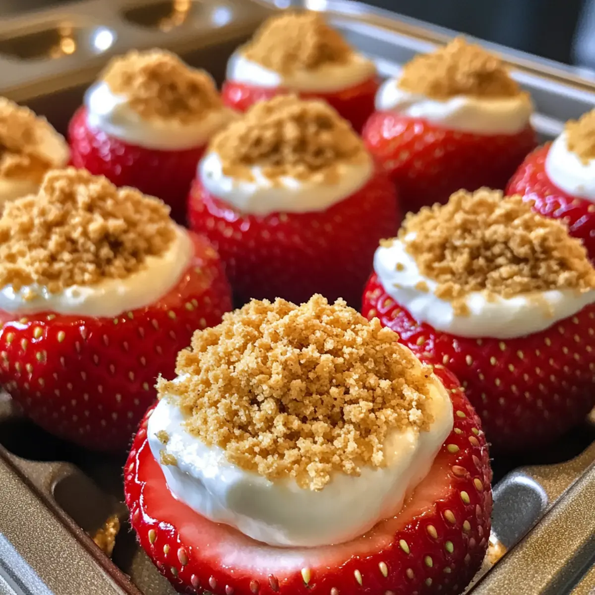 These Cheesecake Deviled Strawberries are ideal for busy cooks looking to prep ahead! You can wash and slice the strawberries up to 24 hours in advance; simply refrigerate them in an airtight container to maintain their freshness. The cheesecake filling can also be made and stored in the fridge for up to 3 days. Just be sure to keep it covered to prevent any odors from affecting its delightful flavor. When you’re ready to serve, simply pipe the filling into the prepared strawberries and sprinkle with graham cracker crumbs. This way, you can enjoy a stunning dessert with minimal effort right when you need it!