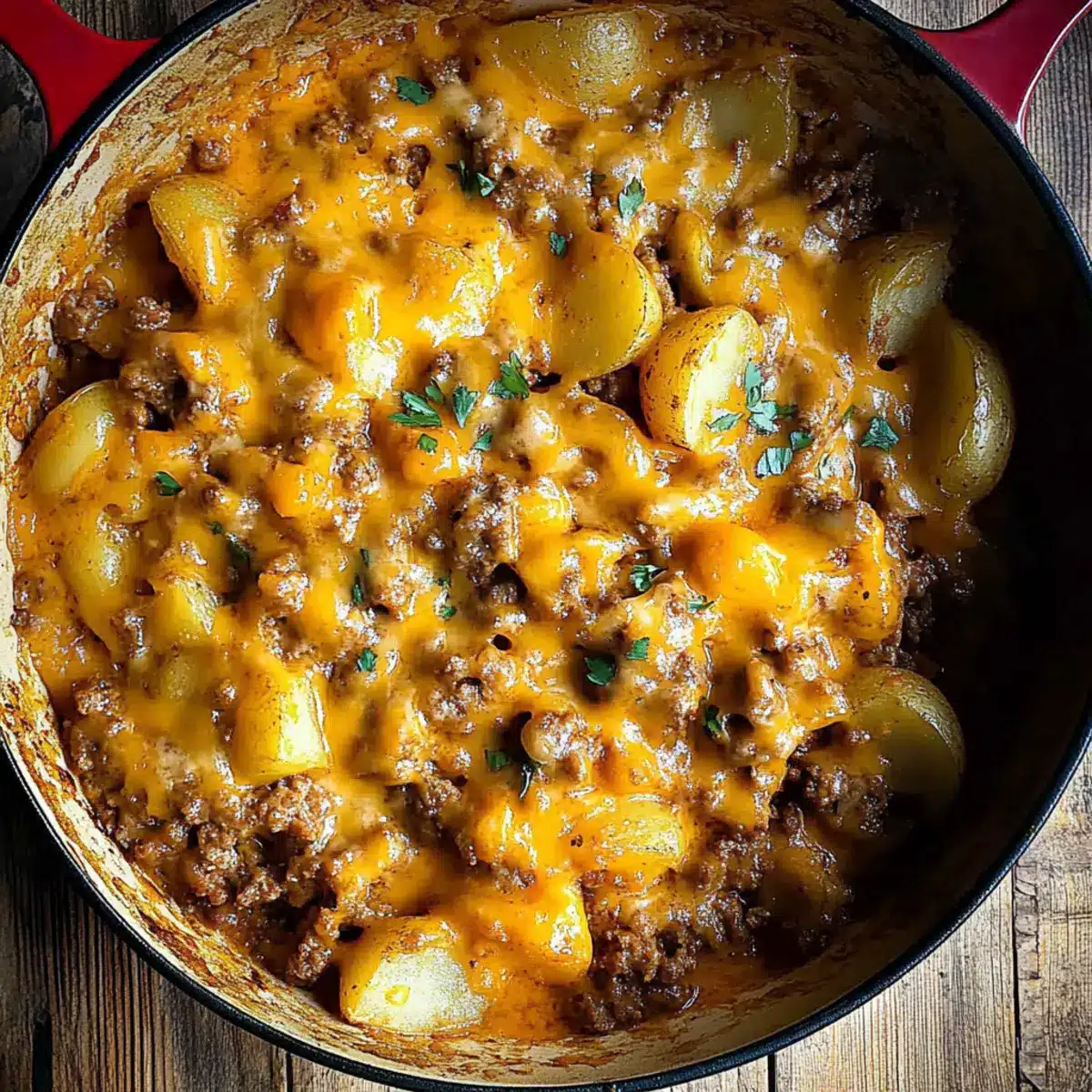 As I stood in my kitchen, the comforting aromas of earthy potatoes and savory beef filled the air, promising a delightful meal. This Cheesy One Pot Beef and Potatoes recipe is my go-to for busy nights when time slips away, yet I still crave something hearty and satisfying. In just 30 minutes, you can create a mouthwatering dinner that brings the family together, minus the hassle of multiple pots and pans. The combination of starchy potatoes, juicy ground beef, and a melty layer of cheddar creates a cozy vibe that feels like a warm hug on a plate. Plus, you’ll love that it cleans up easily—making it a definite win for my fellow home-chefs! Curious about the magic of turning simple ingredients into a comforting feast? Let’s get cooking!