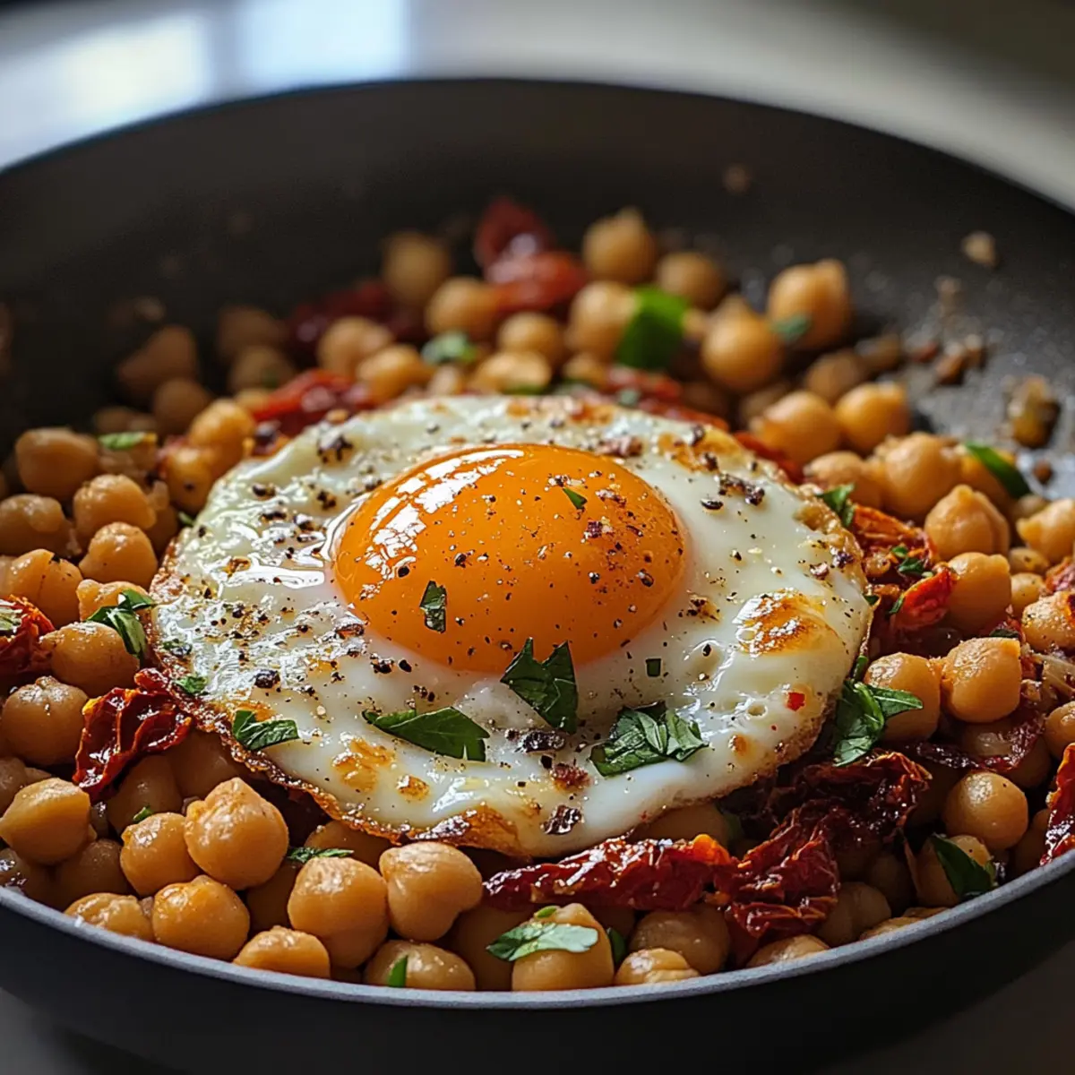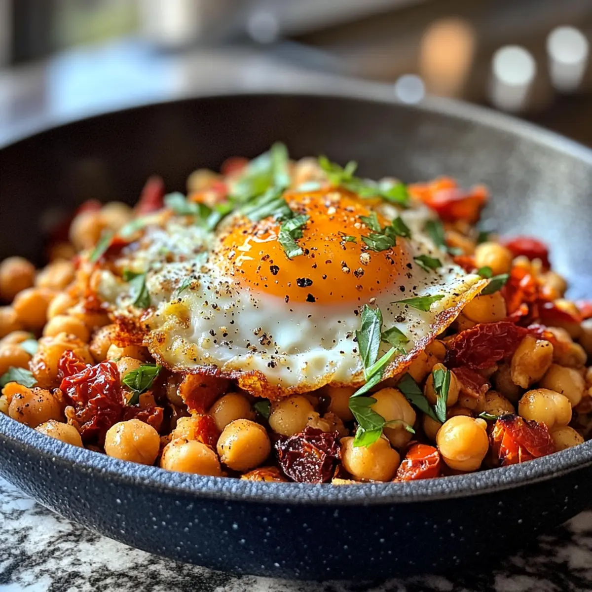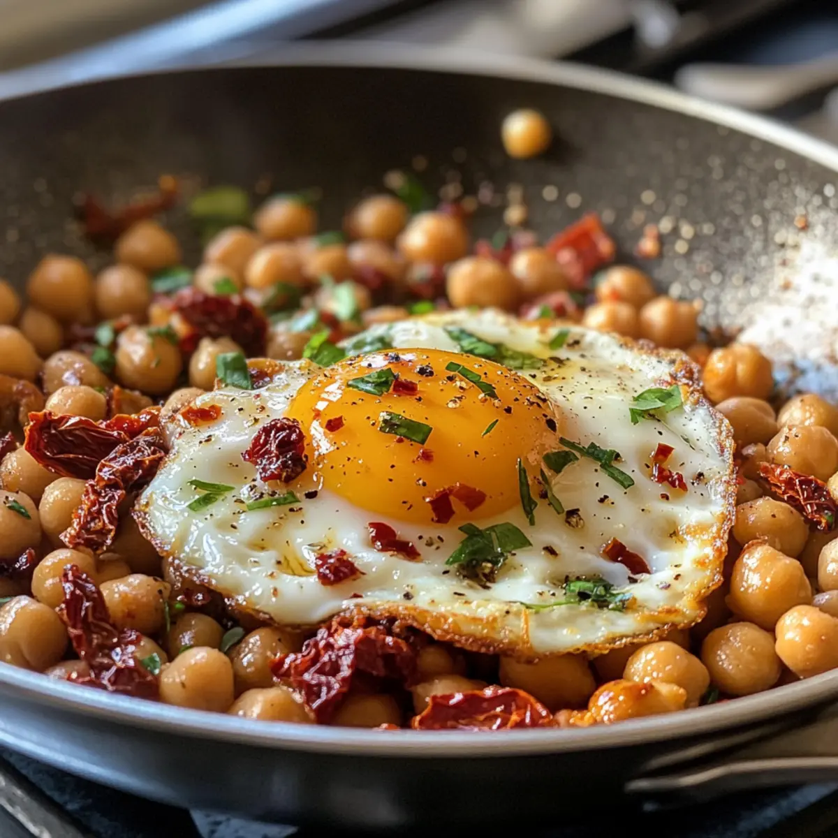• Flavor Boost: Use oil wisely: Utilize oil from sundried tomatoes to both cook the chickpeas and fry the eggs, infusing the dish with additional flavor.