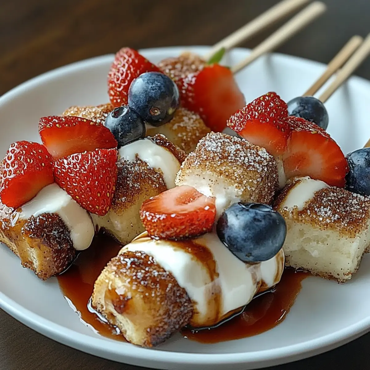 Experiment with Flavors: Feel free to swap strawberries for other fruits like blueberries or mango, and adjust your cream cheese filling for a personalized touch to your Cinnamon Roll Breakfast Skewers!