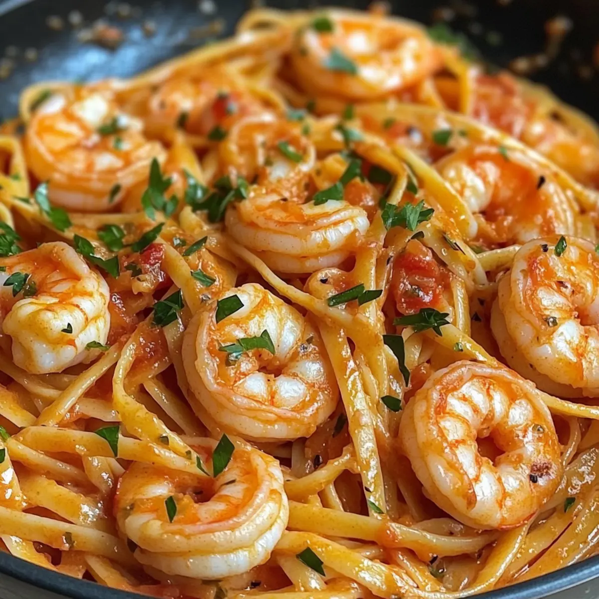 - Remove from heat and transfer creamy shrimp linguine to serving dishes. Garnish with freshly chopped parsley and serve immediately.