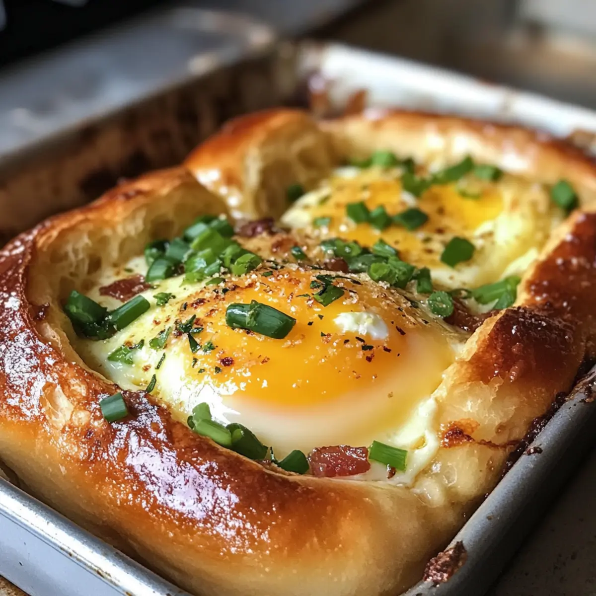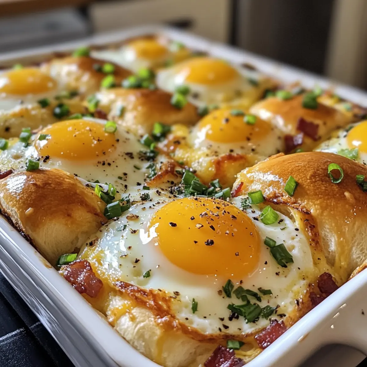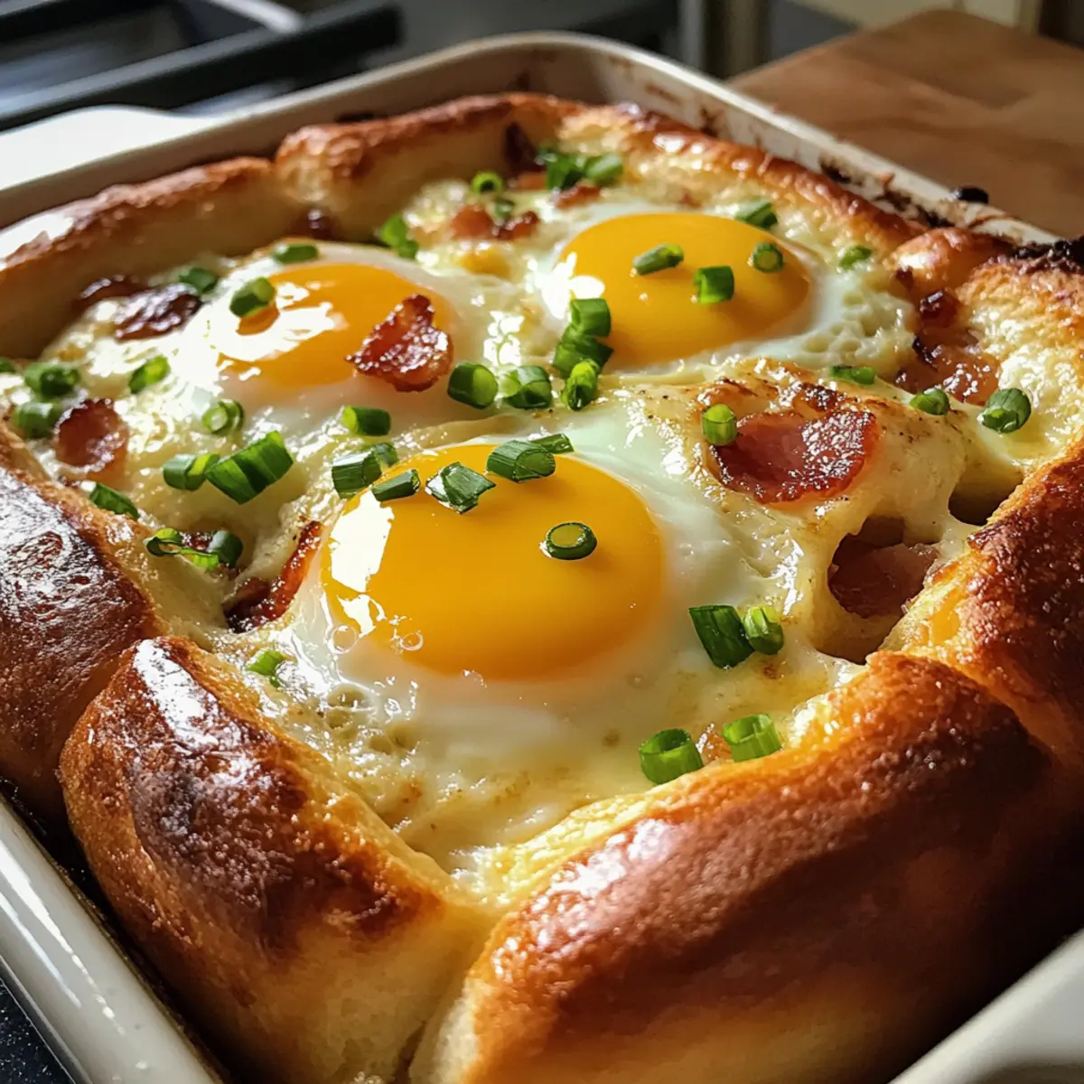 Simplicity, with just a few ingredients, you can whip up a delightful breakfast that looks impressive and tastes divine. Customization options abound, allowing you to swap in different meats or cheeses to suit your taste. Savory satisfaction comes from the combination of crispy bacon and rich eggs nestled in soft brioche rolls. Time-saving at its finest, this bake can be prepped ahead and is perfect for serving a crowd. Finally, family-friendly fun awaits as everyone gathers around to enjoy this warm, hearty dish that brings love and laughter to the breakfast table!