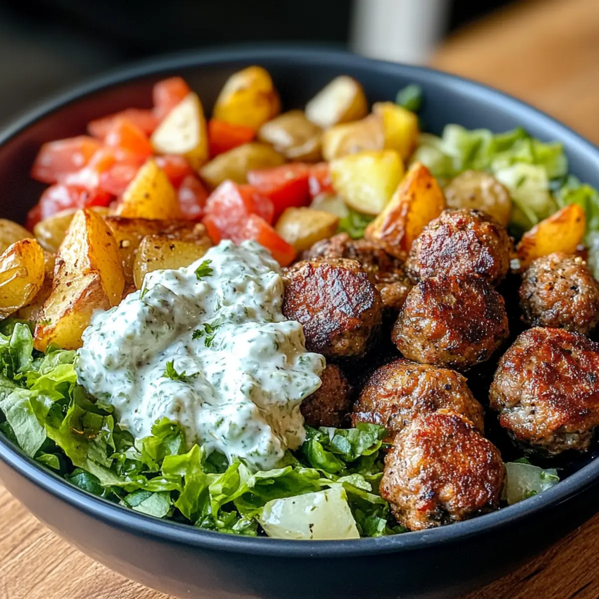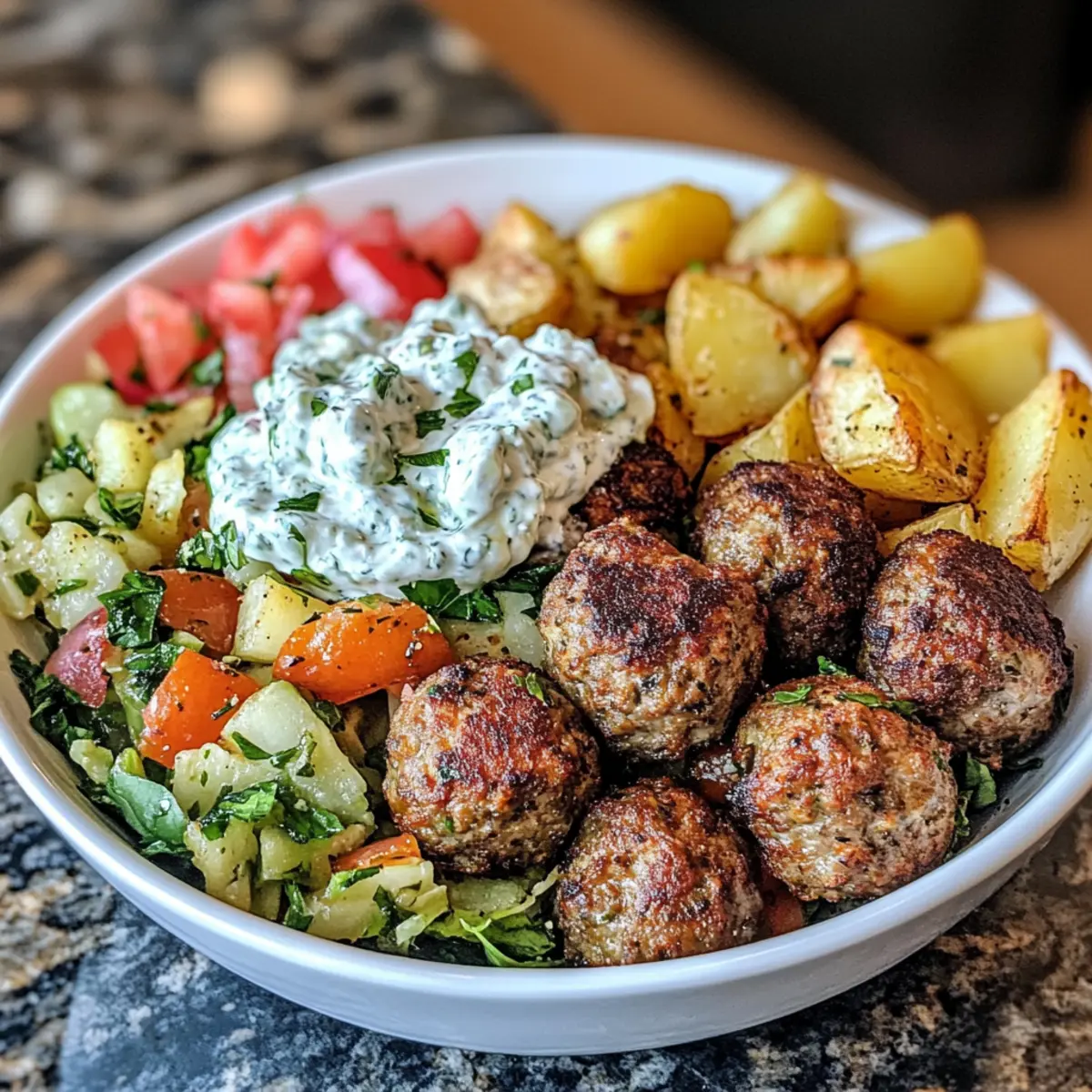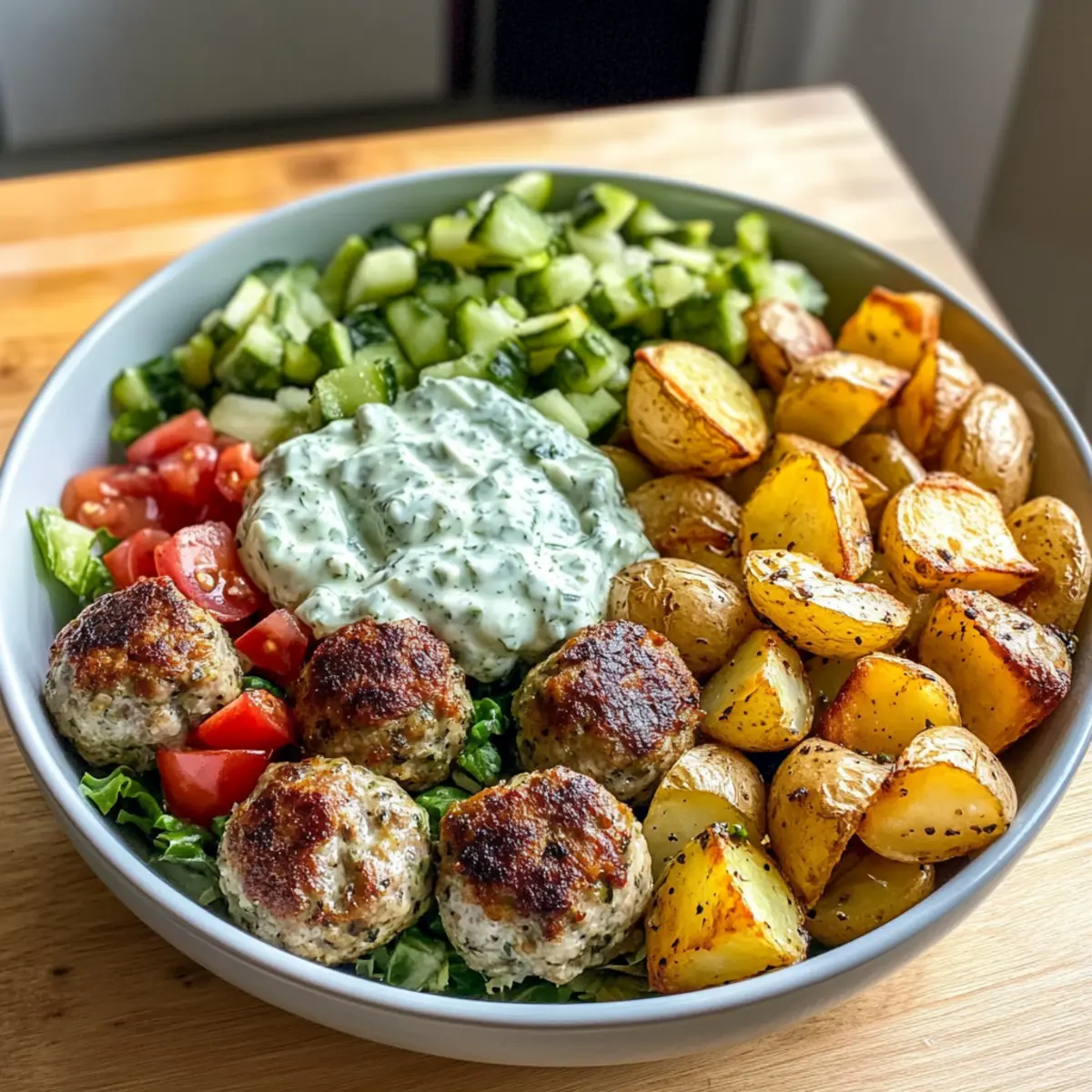 Greek Meatball Bowl: Tender Delight with Creamy Tzatziki