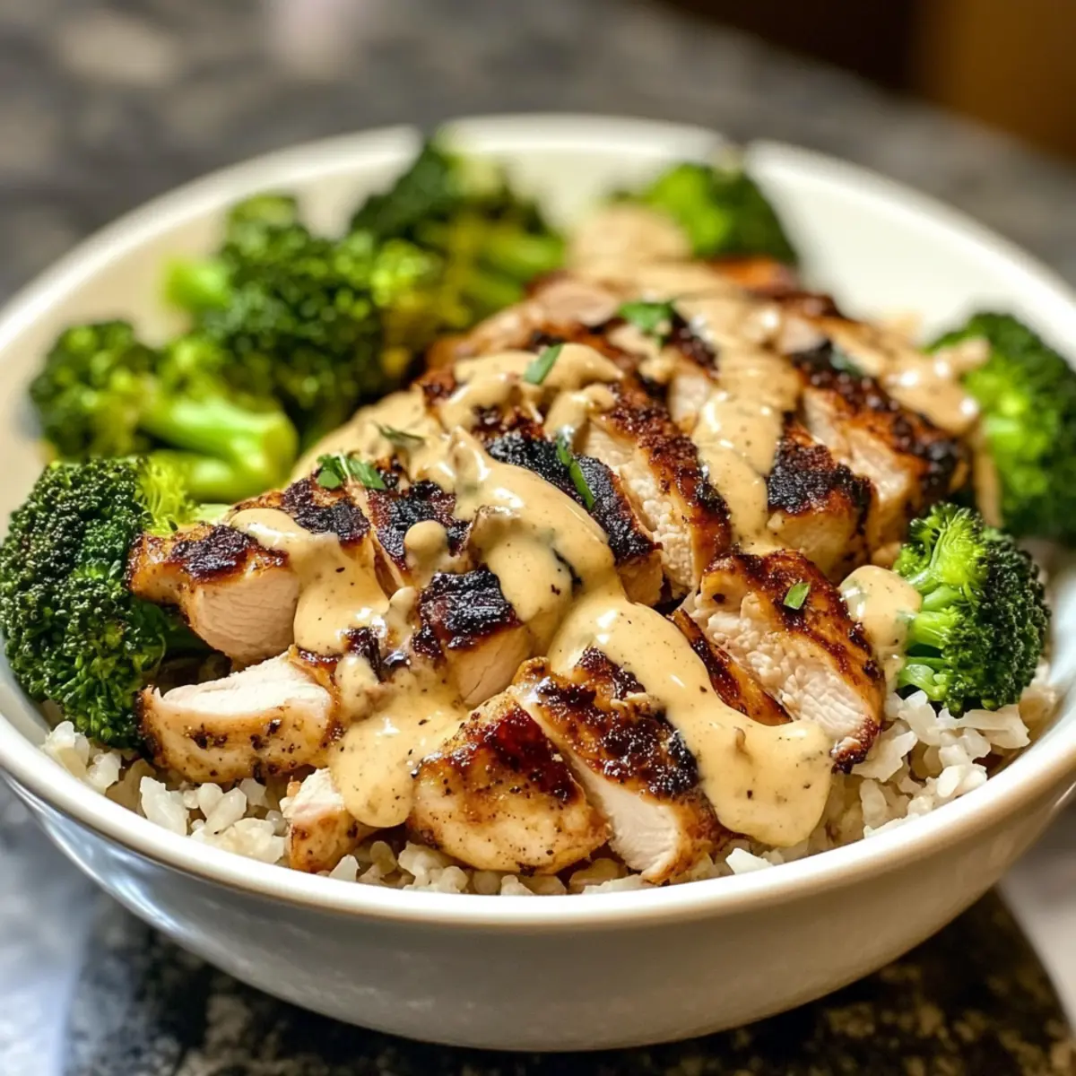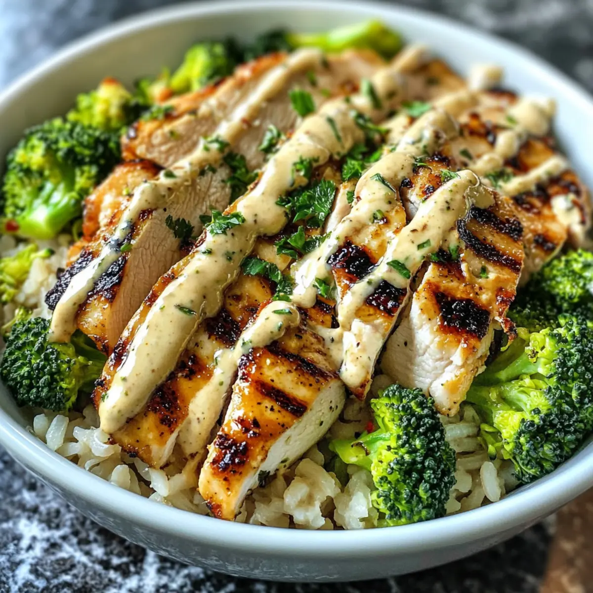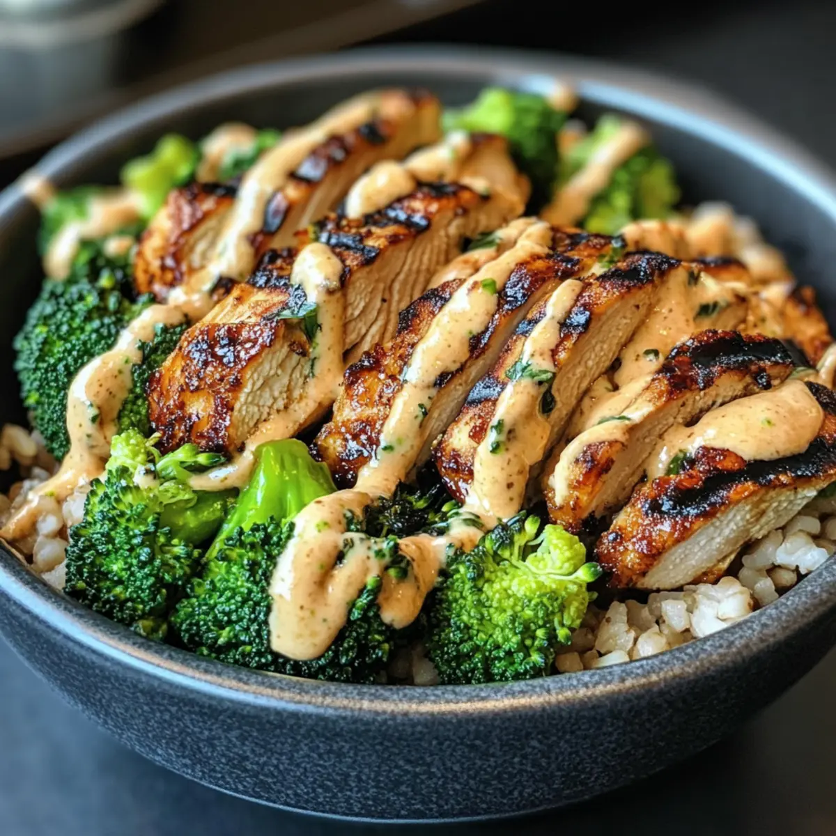 Grilled Chicken & Broccoli Bowls with Creamy Garlic Sauce Bliss