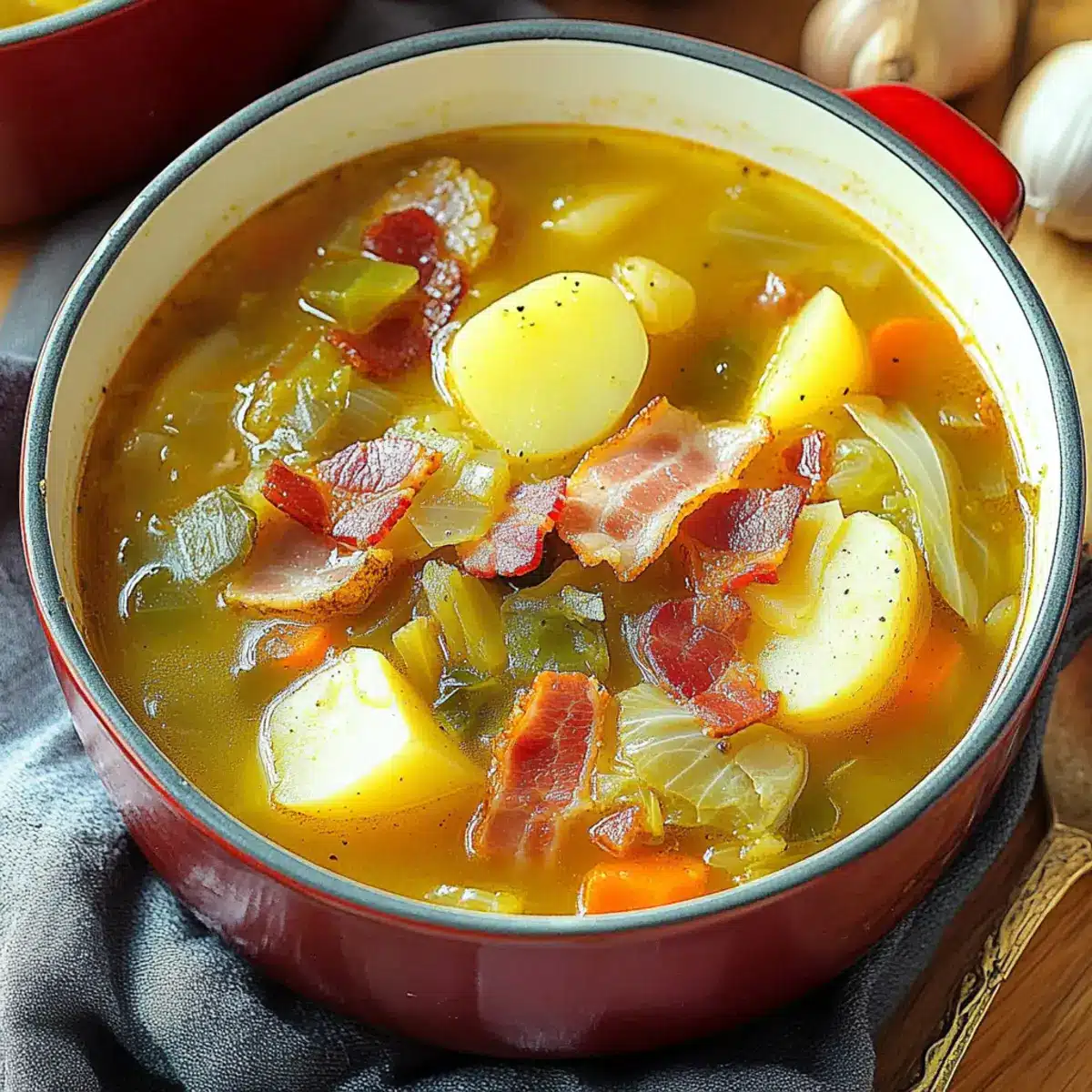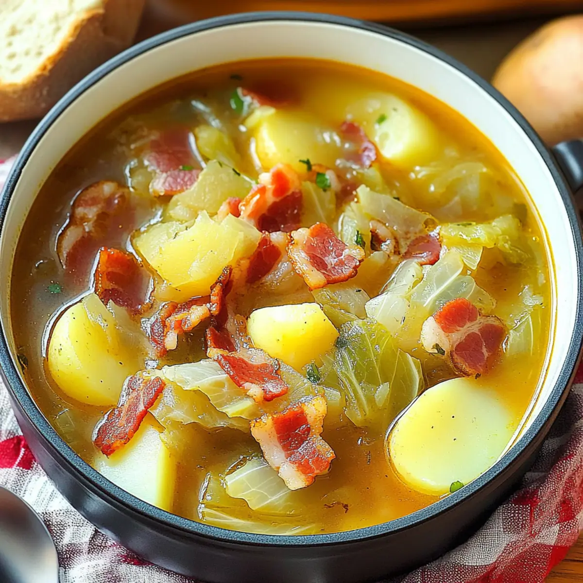 Deliciously Hearty: Filled with smoky bacon, tender potatoes, and vibrant cabbage, it’s a flavor bomb that satisfies.