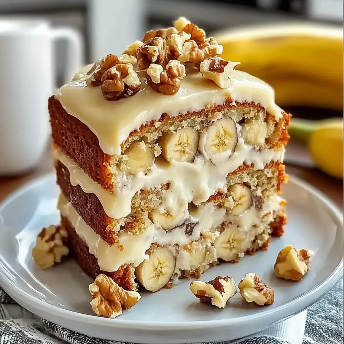 Moist and Tender: Each slice of this Luscious Vanilla Banana Walnut Cake reveals a soft, luscious interior that practically melts in your mouth.