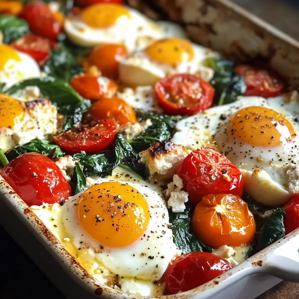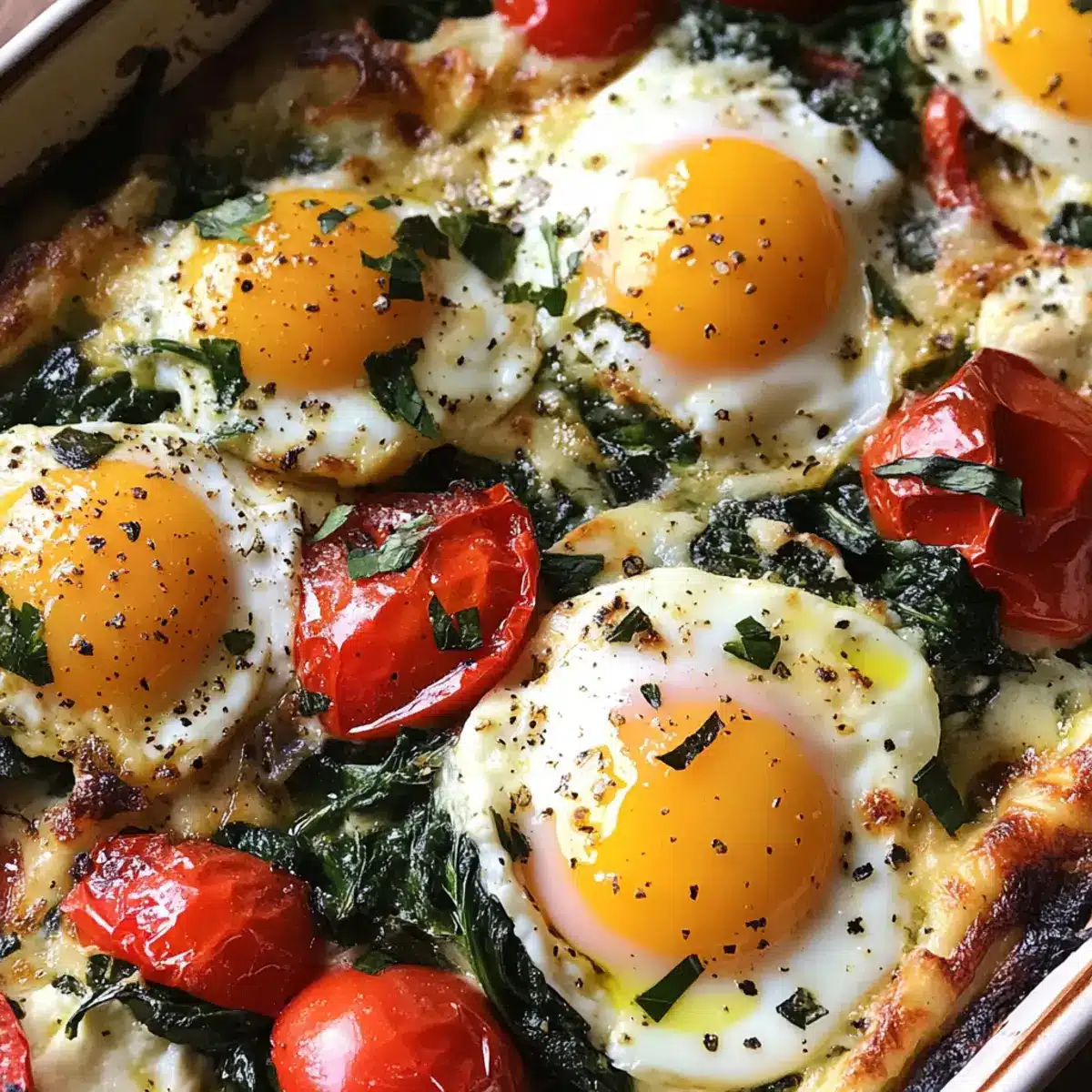 As I stood in the kitchen the other morning, inhaling the fragrant mix of fresh garlic and baked vegetables, I realized how much joy a simple dish can bring. Today, I’m excited to share my Mediterranean Baked Feta Eggs with Spinach, an easy-to-make meal that feels like a luxurious brunch experience right at home. This dish is not only a delightful celebration of Mediterranean flavors—think creamy feta, sweet tomatoes, and a whisper of heat from red pepper flakes—but it’s also a fantastic way to sneak some veggies into your breakfast. Perfect for busy weekdays or lazy weekends, this one-dish wonder is a crowd-pleaser and a make-ahead marvel. Trust me, once you try this recipe, brunching at home will become your new favorite tradition. Ready to explore more delicious details? Let’s dive in!