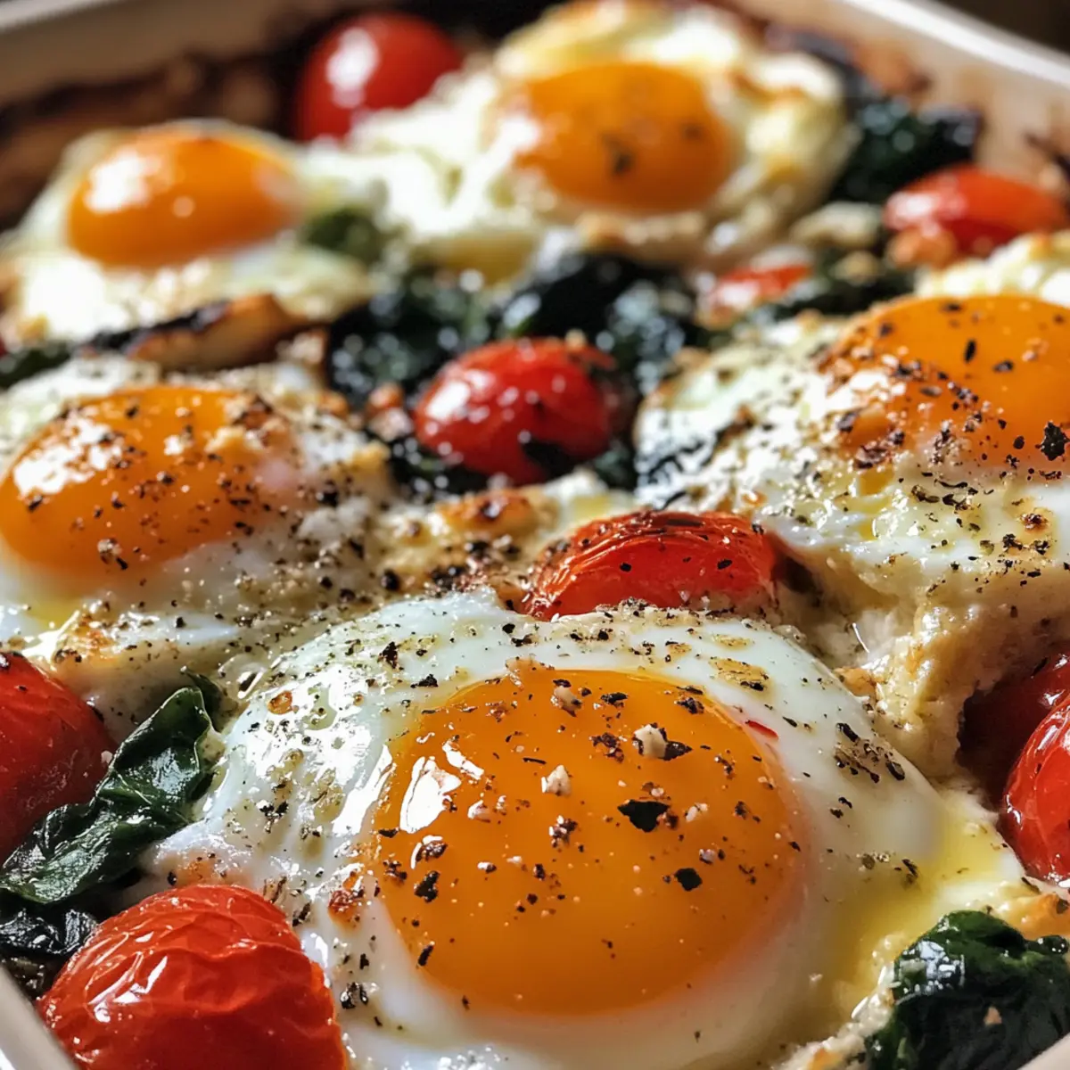 Carefully crack the eggs into the wells you’ve created in the spinach and vegetable mixture. Be gentle to keep the yolks intact. Sprinkle the top with fresh lemon zest for a bright finish that will elevate the flavors of your Mediterranean Baked Feta Eggs with Spinach.