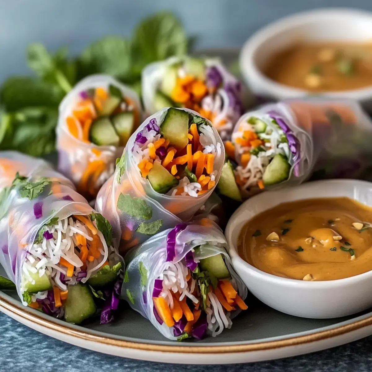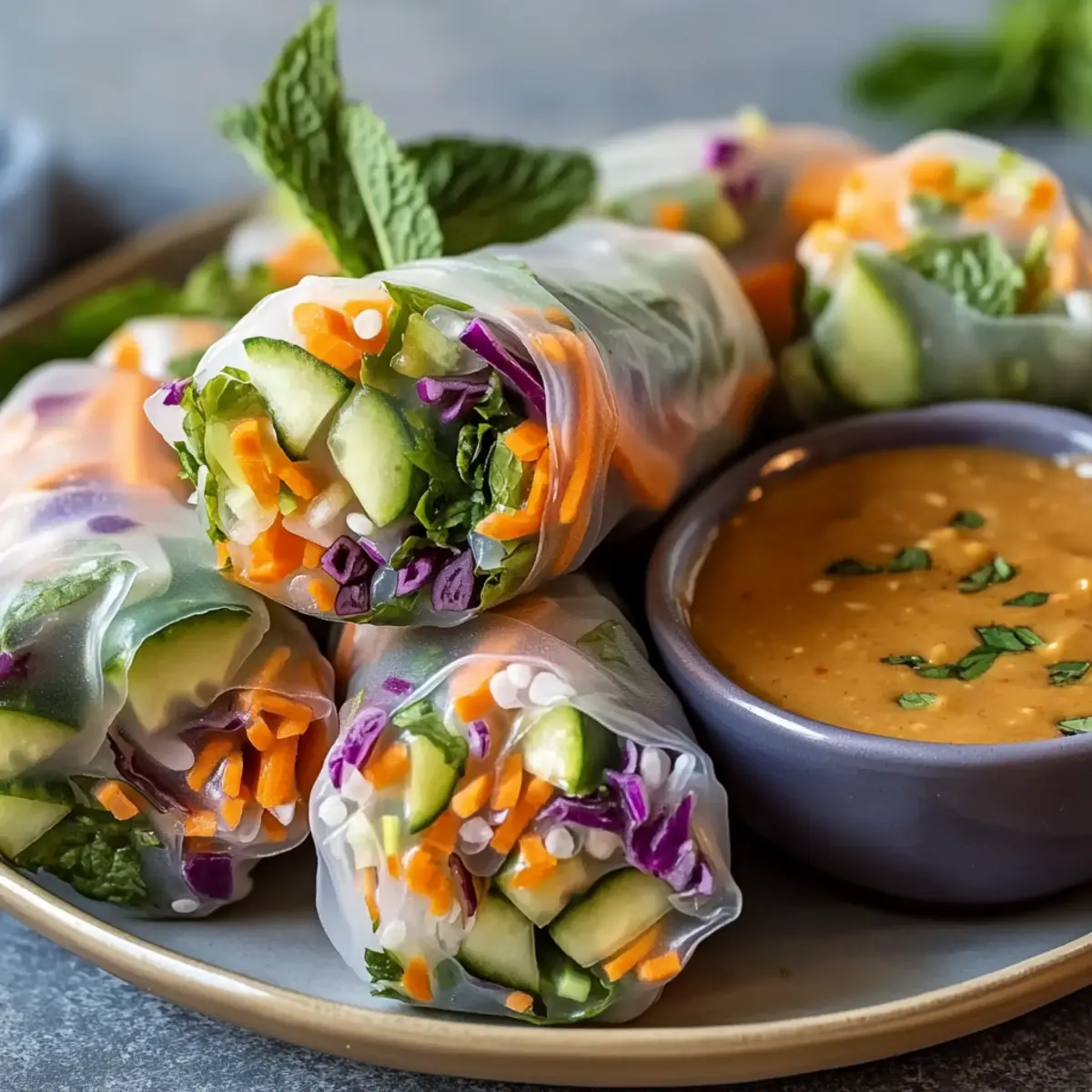 Get ready to enjoy these Rainbow Veggie Rice Paper Rolls with Peanut Sauce—a delightful, nutritious option perfect for any meal or gathering!