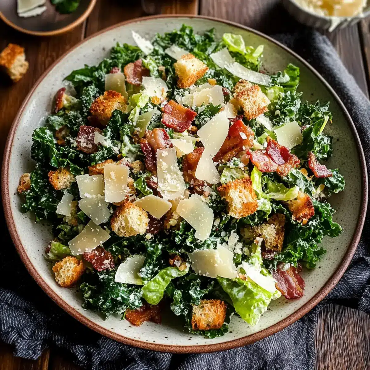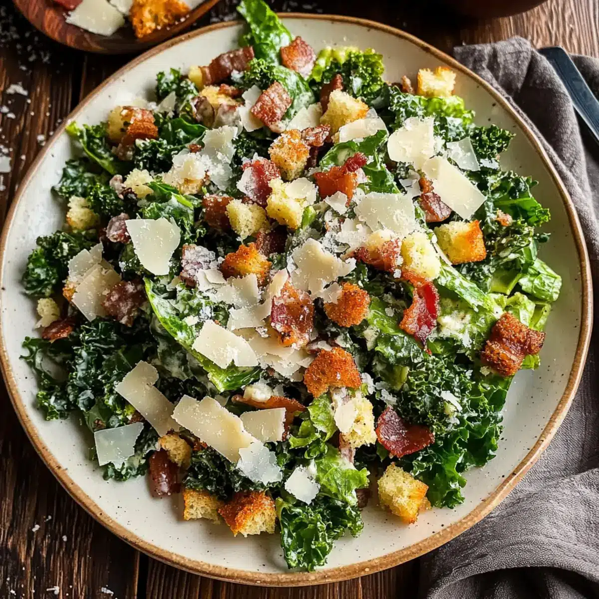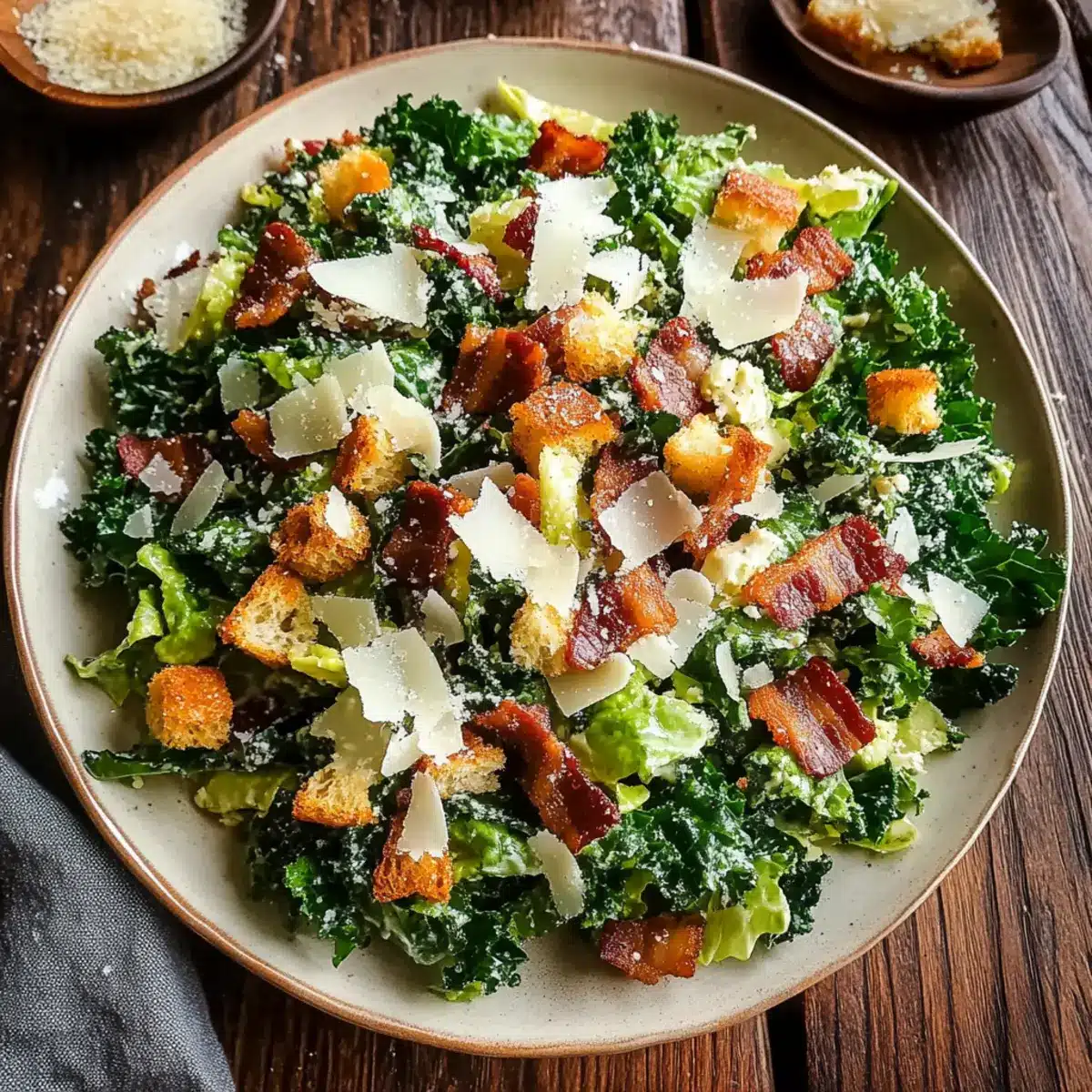 Roasted Garlic & Kale Caesar Salad with Crispy Bacon Delight