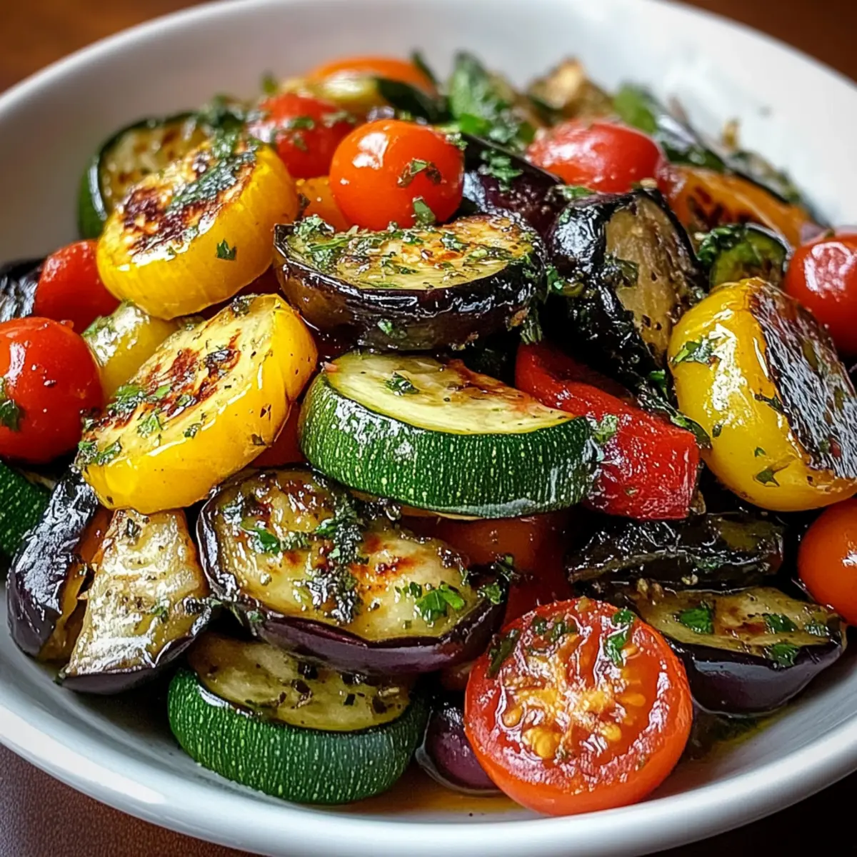 Absolutely! When choosing vegetables for your Savory Mediterranean Sautéed Vegetables, look for firm and vibrant produce. For instance, the zucchini should be bright green without any dark spots, eggplant should feel heavy and smooth, and bell peppers should be shiny with no blemishes. Fresh cherry tomatoes should be plump and not have any wrinkling or soft spots. Quality ingredients will ensure your dish is as colorful and flavorful as possible!
