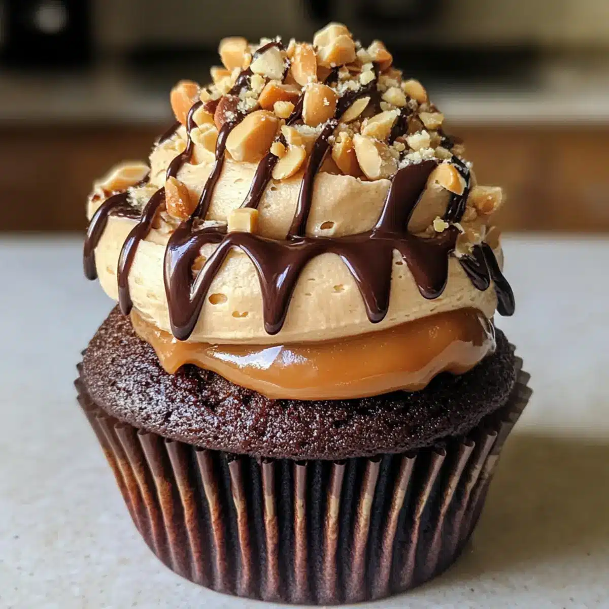 Moist and Flavorful: With a rich chocolate base and gooey peanut caramel filling, each bite bursts with flavor, making these cupcakes perfect for any occasion or simply as a guilty pleasure.