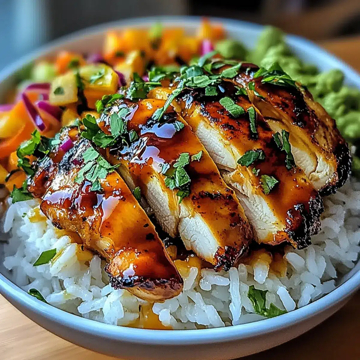 - Remove chicken from the skillet, let rest for a few minutes. Fluff coconut rice with a fork. Slice chicken and serve alongside rice, drizzling any remaining glaze over the dish.
