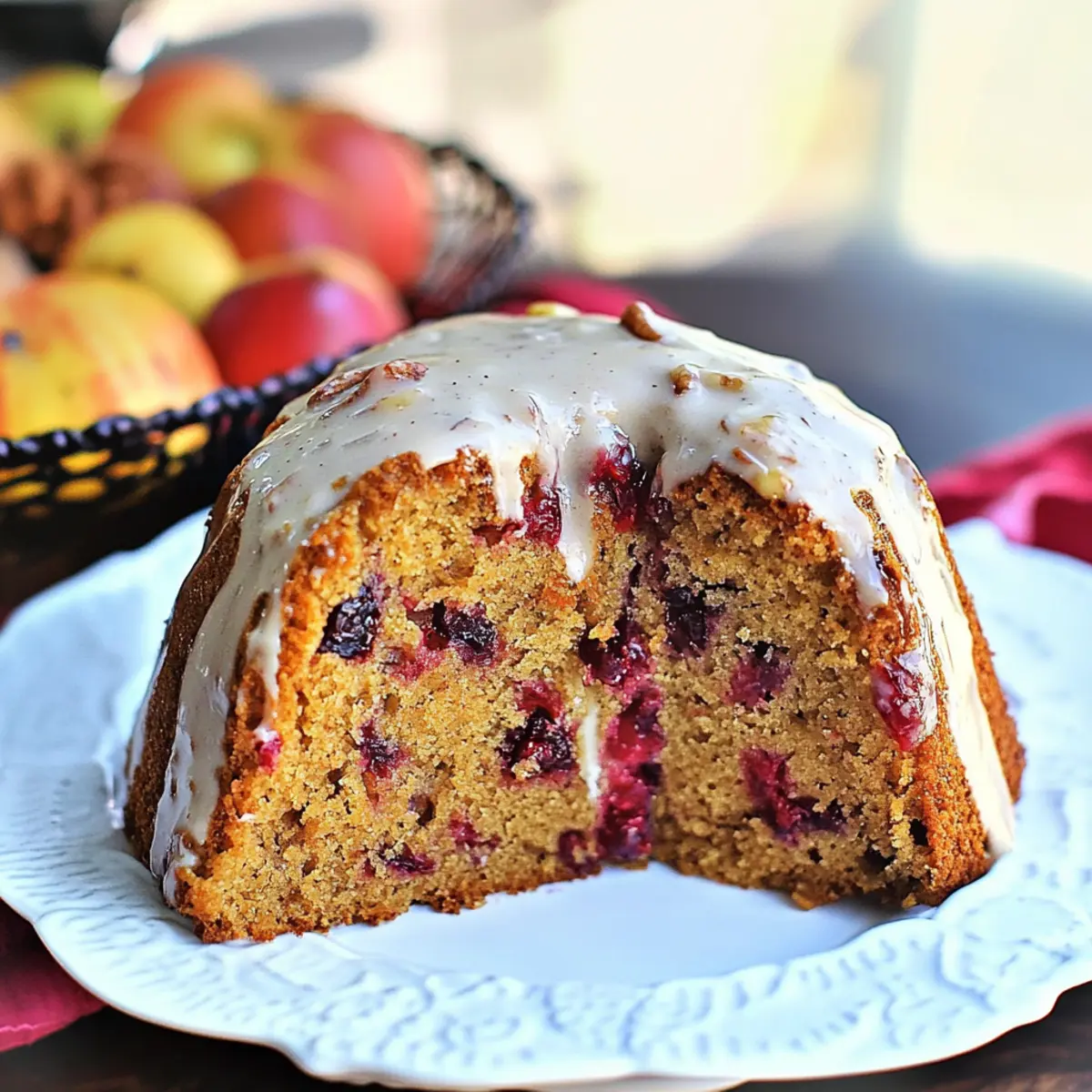 Festive Flavors: Bursting with seasonal tastes of cranberries, apples, and warm spices, this cake beautifully captures the essence of Thanksgiving gatherings.