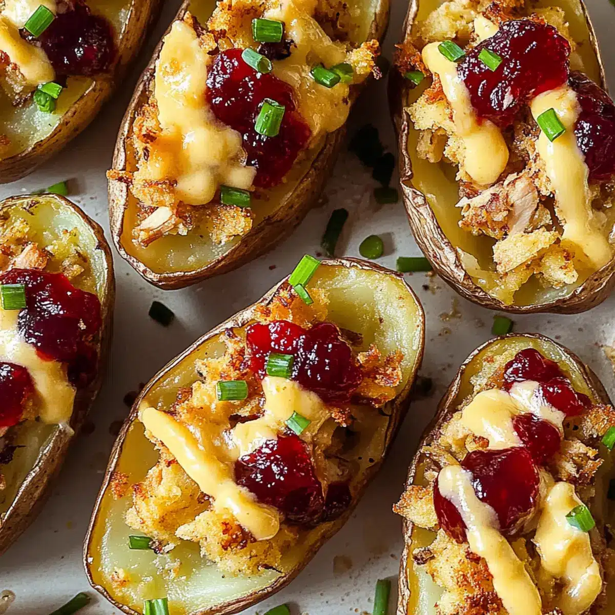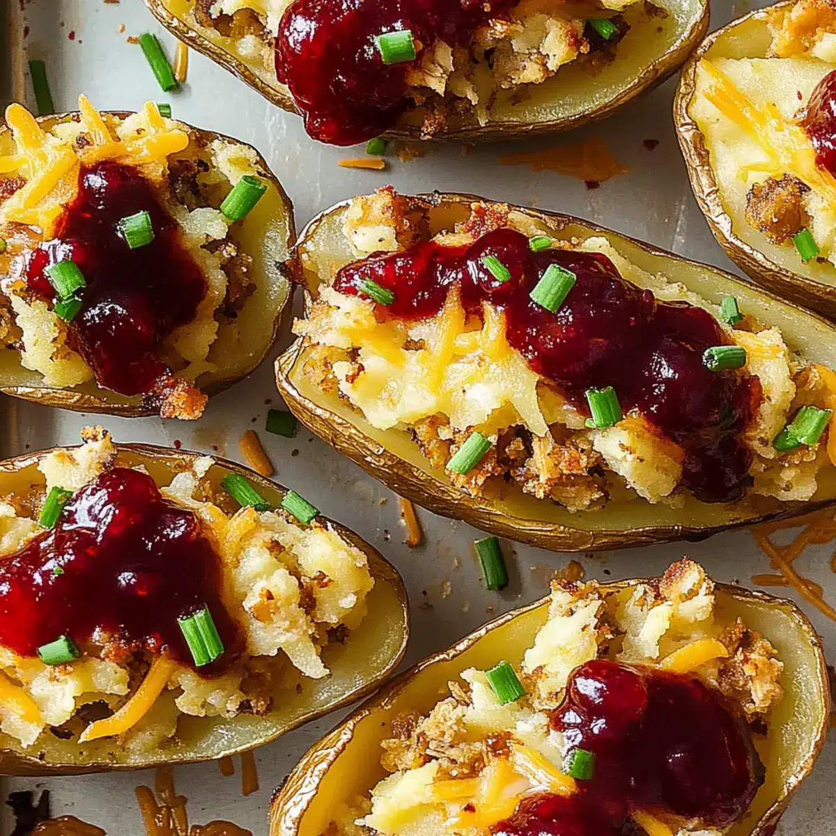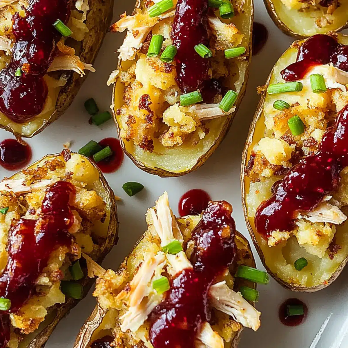 Cranberry Sauce: This tangy, sweet topping enhances the savory filling, echoing the festive spirit of Thanksgiving. A drizzle on each skin can elevate every bite beautifully.