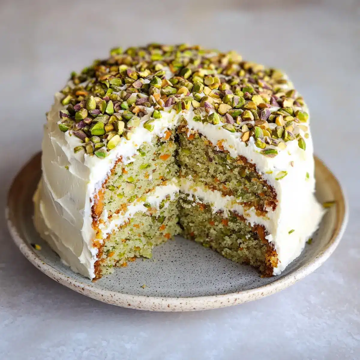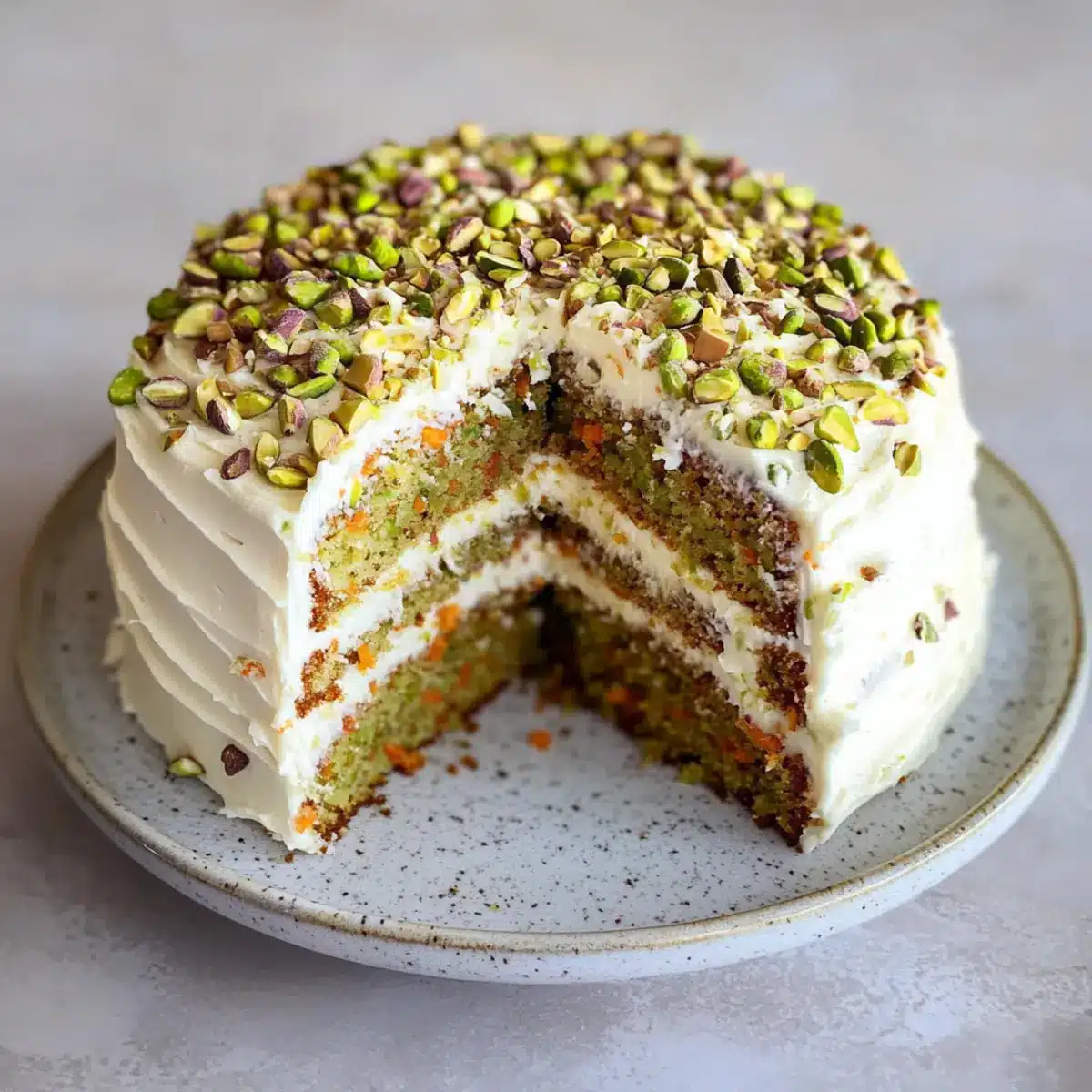 Delight in Vegan Carrot Pistachio Cake with Cream Cheese Frosting